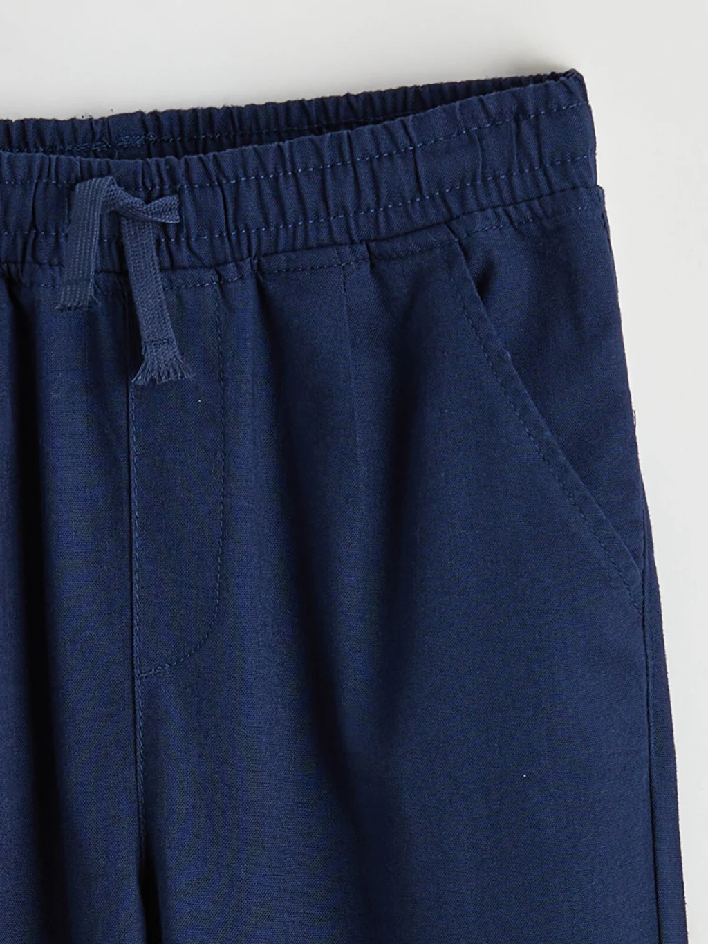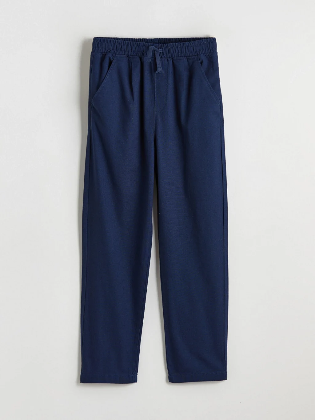 Erkek çocuk pantolon, %100 pamuklu poplin kumaştan üretilmiştir. Beli lastikli ve ayarlanabilir bağcıklıdır. Yan cepleri bulunur.