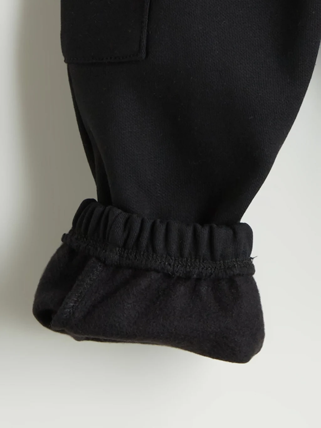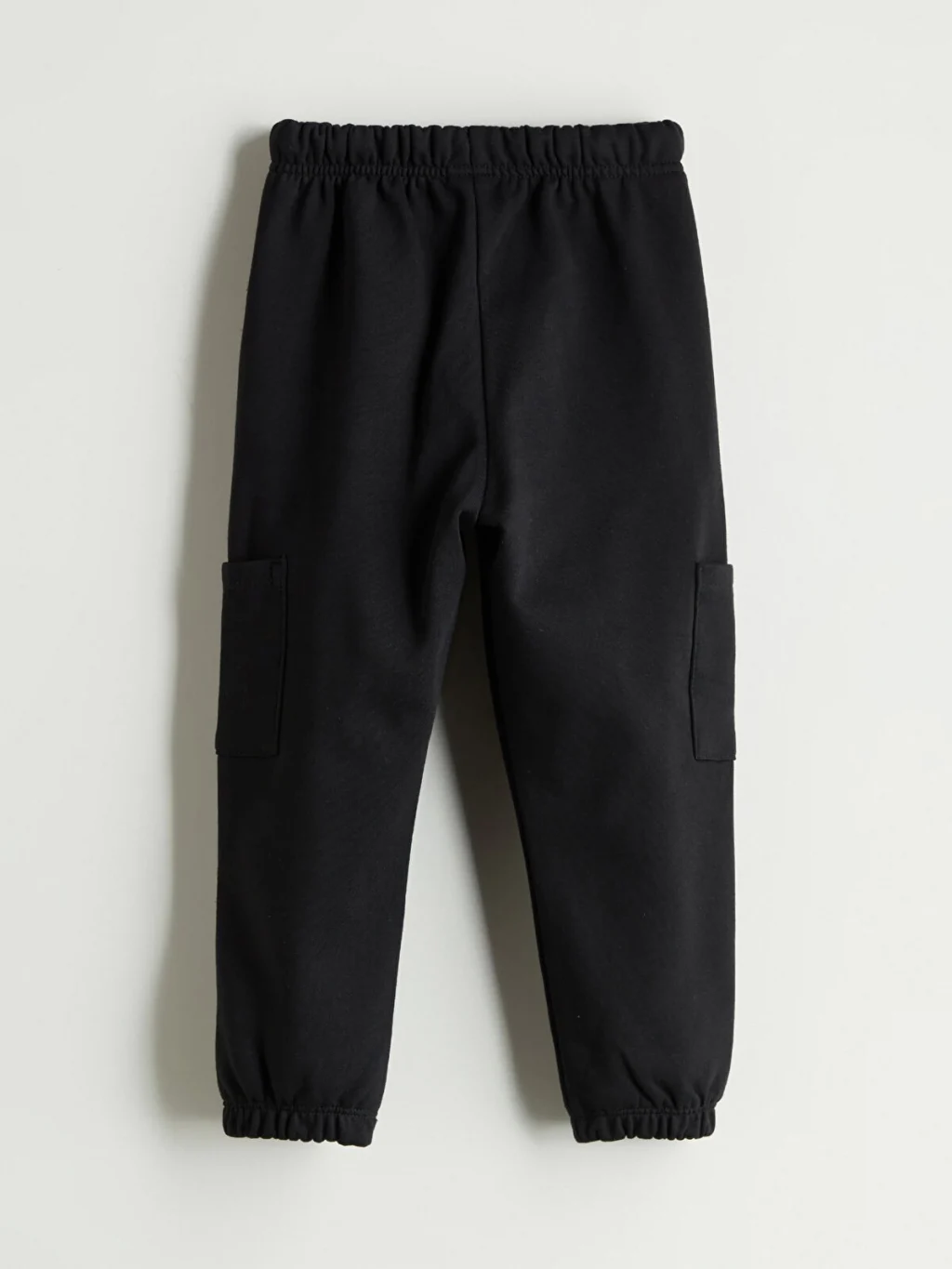 Beli lastikli ve bağcıklı erkek çocuk eşofman altı, kalın 3 iplik şardonlu kumaştan üretilmiştir. Kargo cepli ve paçaları lastiklidir.