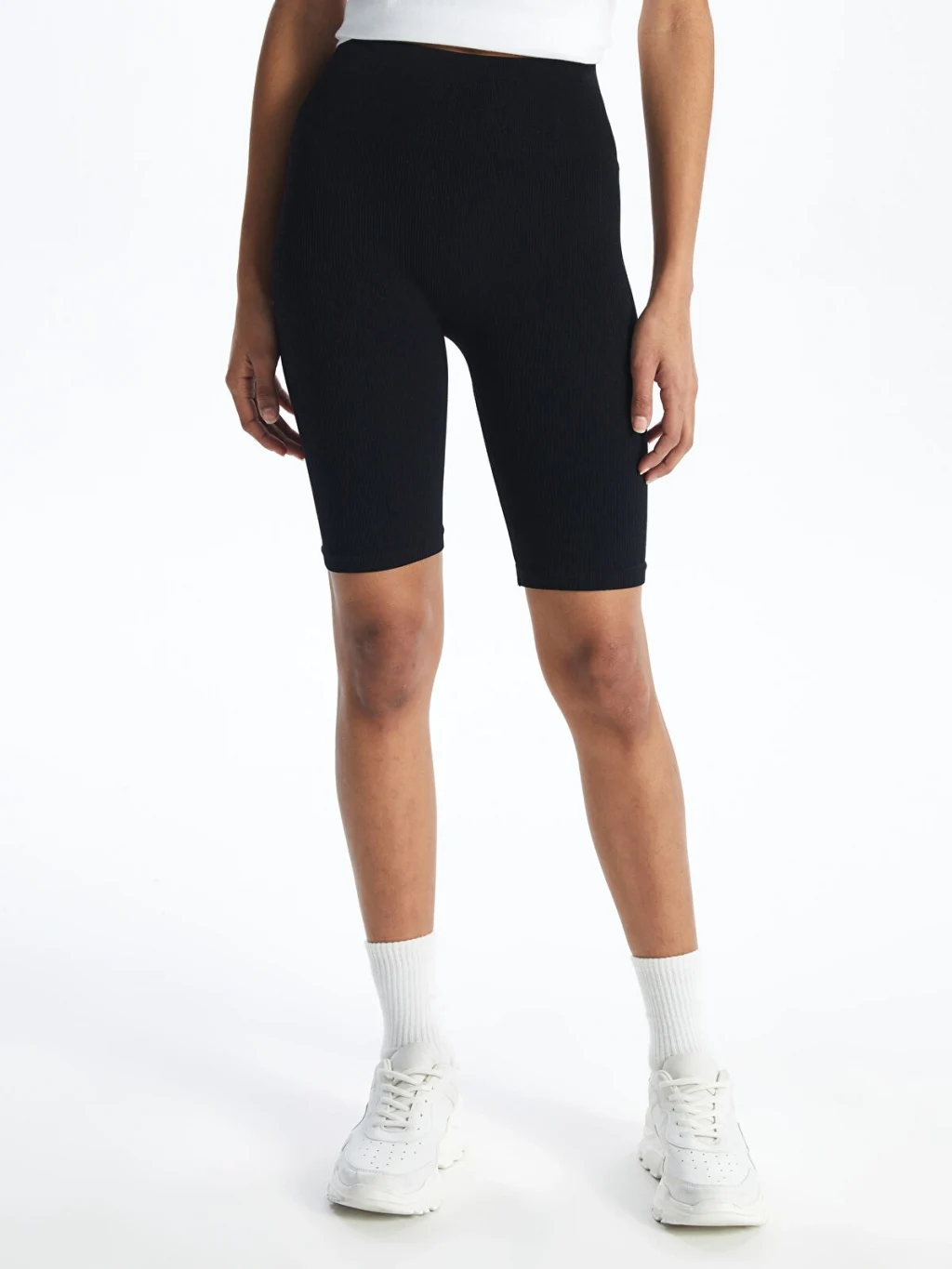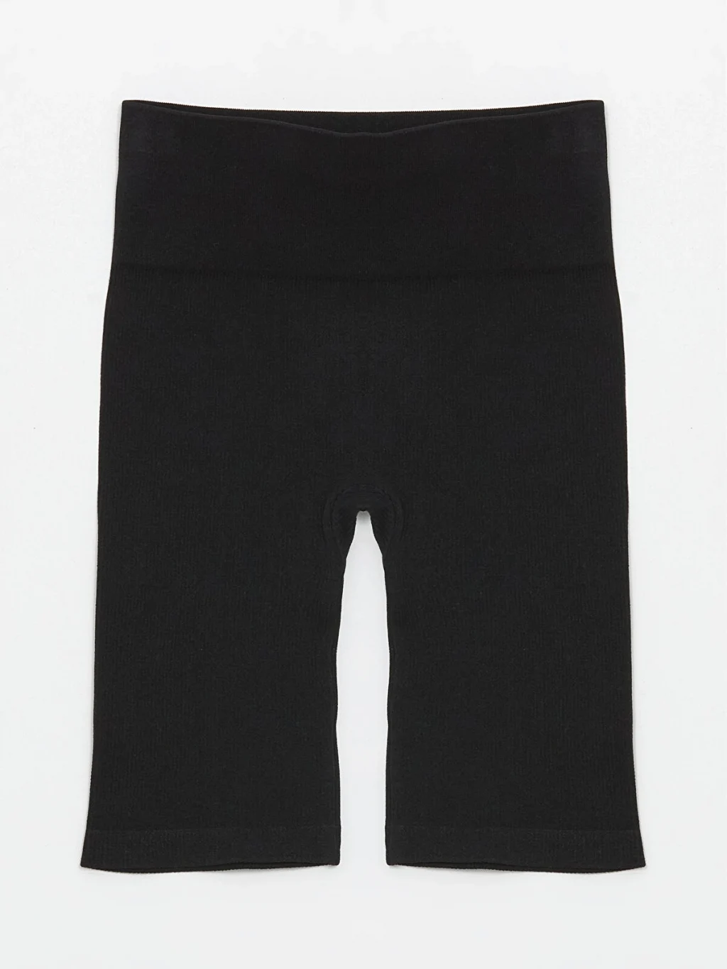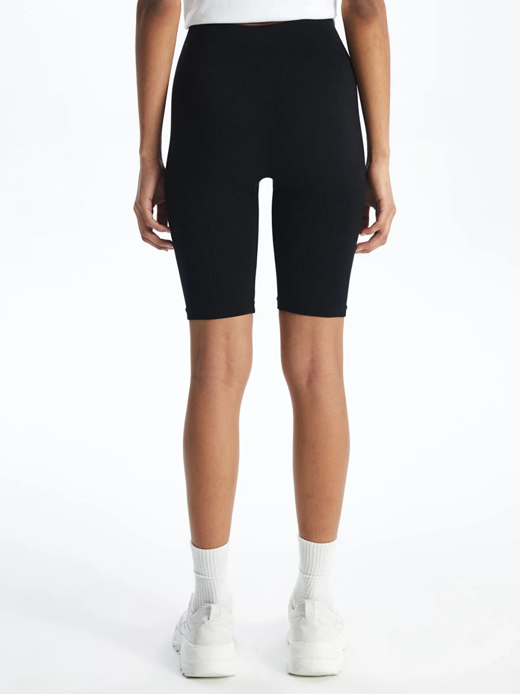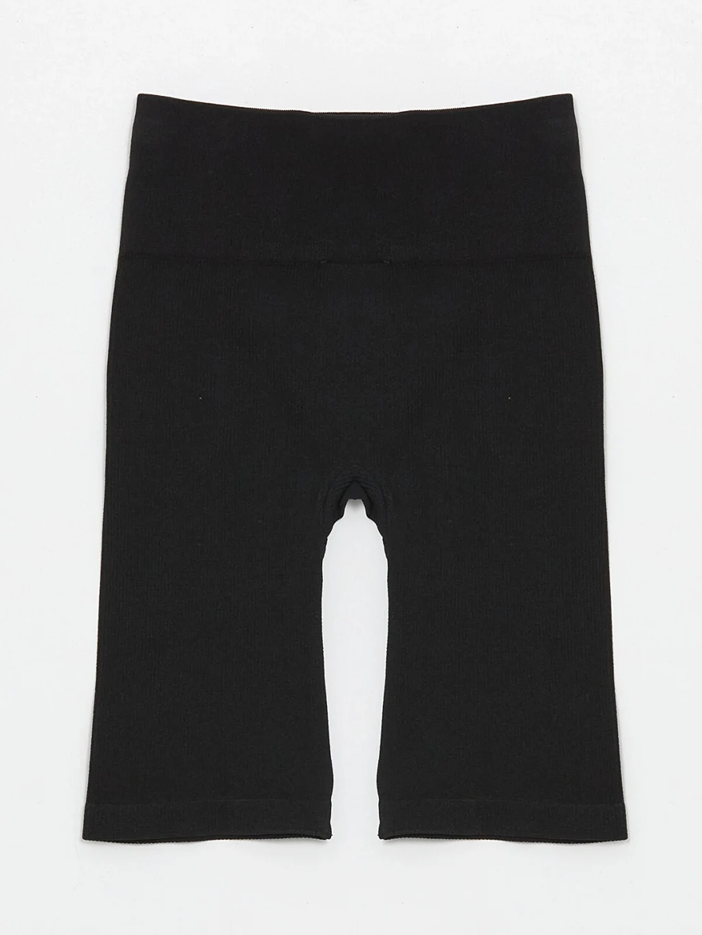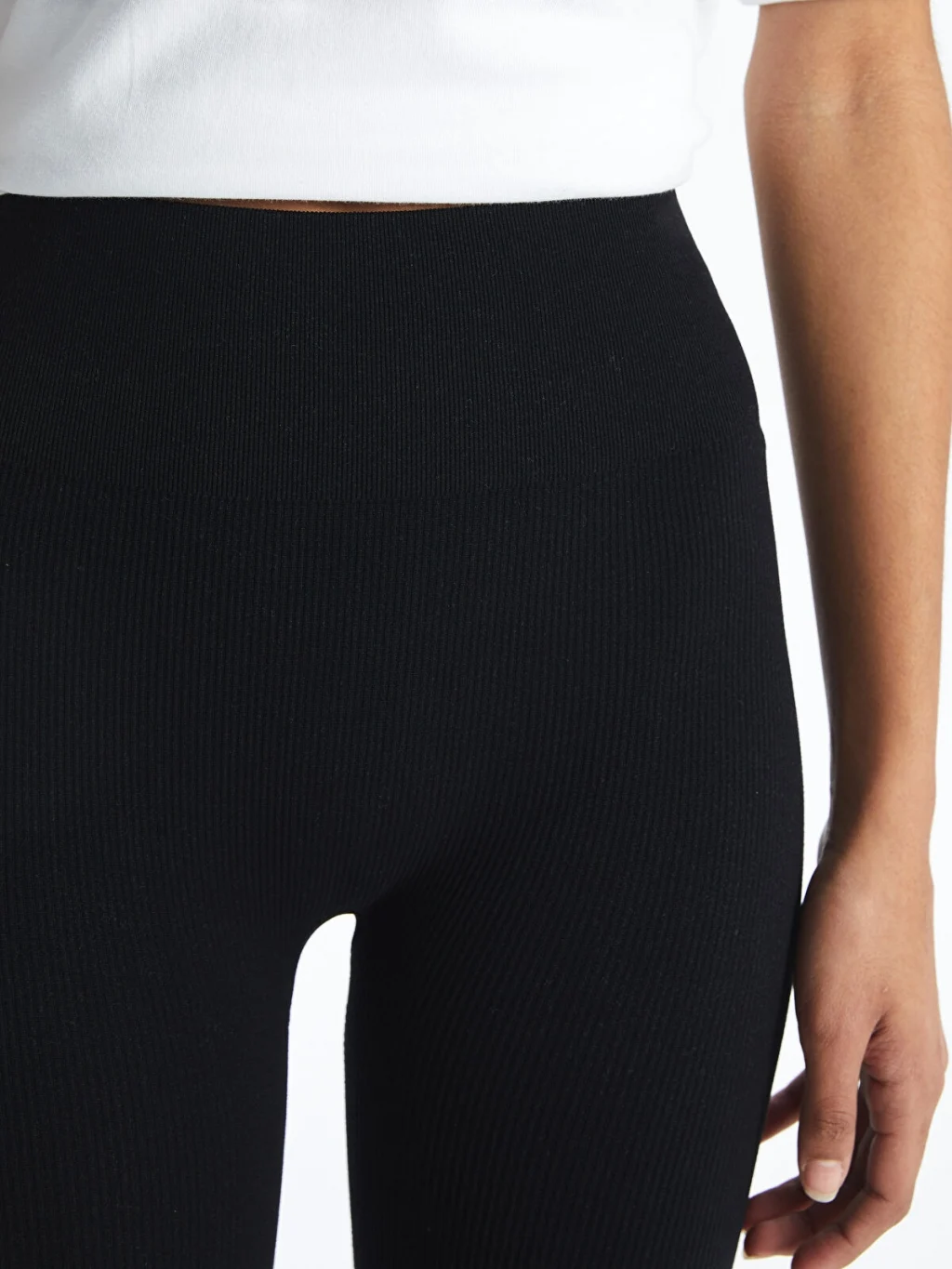 Yüksek ve geniş belli kadın spor tayt, dikişsiz esnek kumaştan üretilmiştir. Dar kesimli ve kısa paçalıdır.