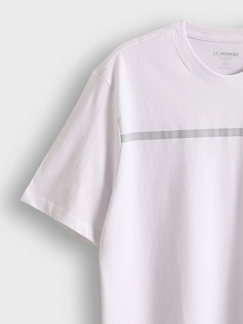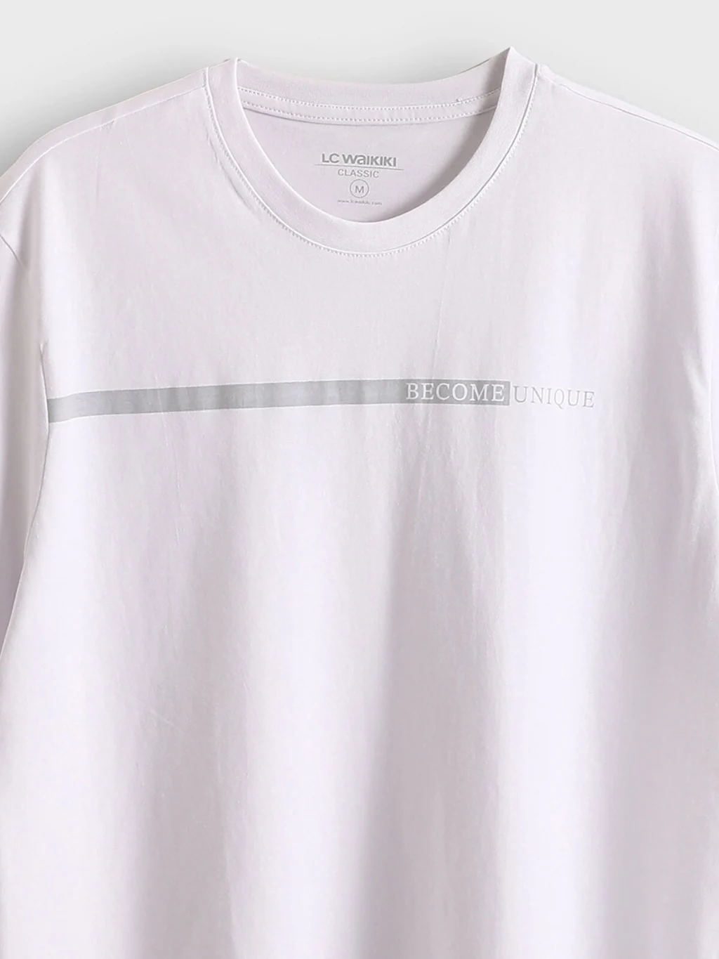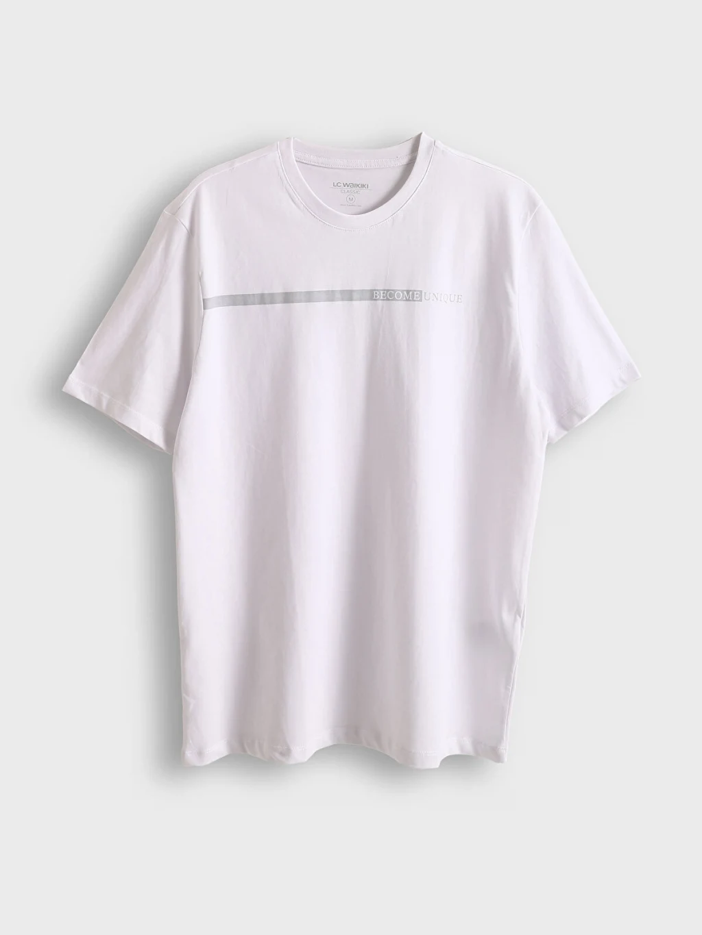 %100 pamuklu penye kumaştan üretilen, bisiklet yakalı ve kısa kollu erkek tişört, göğüs kısmında baskı detayına sahiptir.