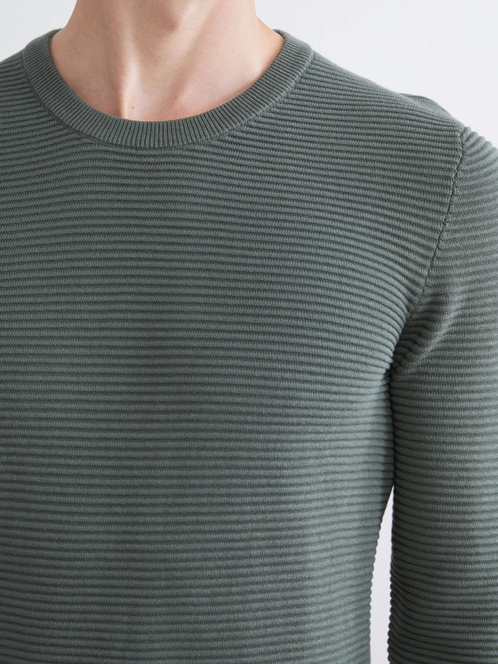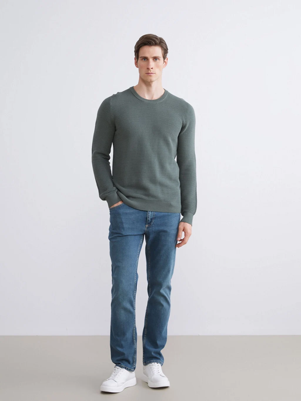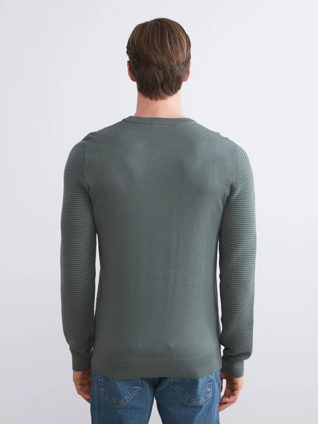 Triko kumaştan üretilmiş ve yumuşak bir dokuya sahiptir. Bisiklet yaka tasarımı, modern bir görünüm sunar ve farklı kombinlerle rahatça kullanılabilir.