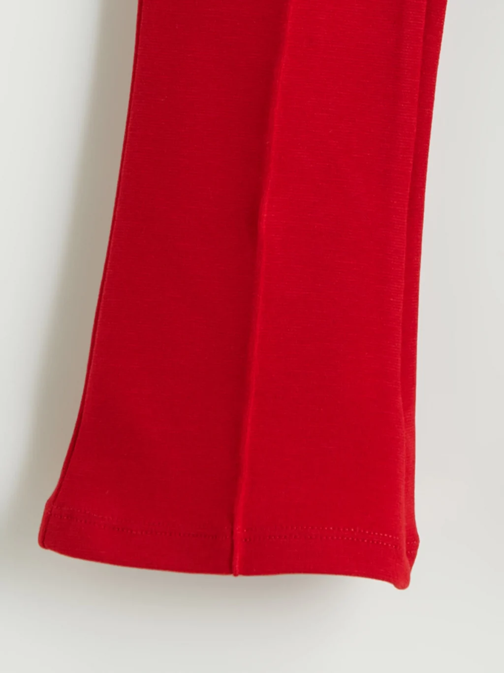Esnek kumaştan üretilen kız çocuk tayt, ispanyol paça ve beli lastikli tasarıma sahiptir.