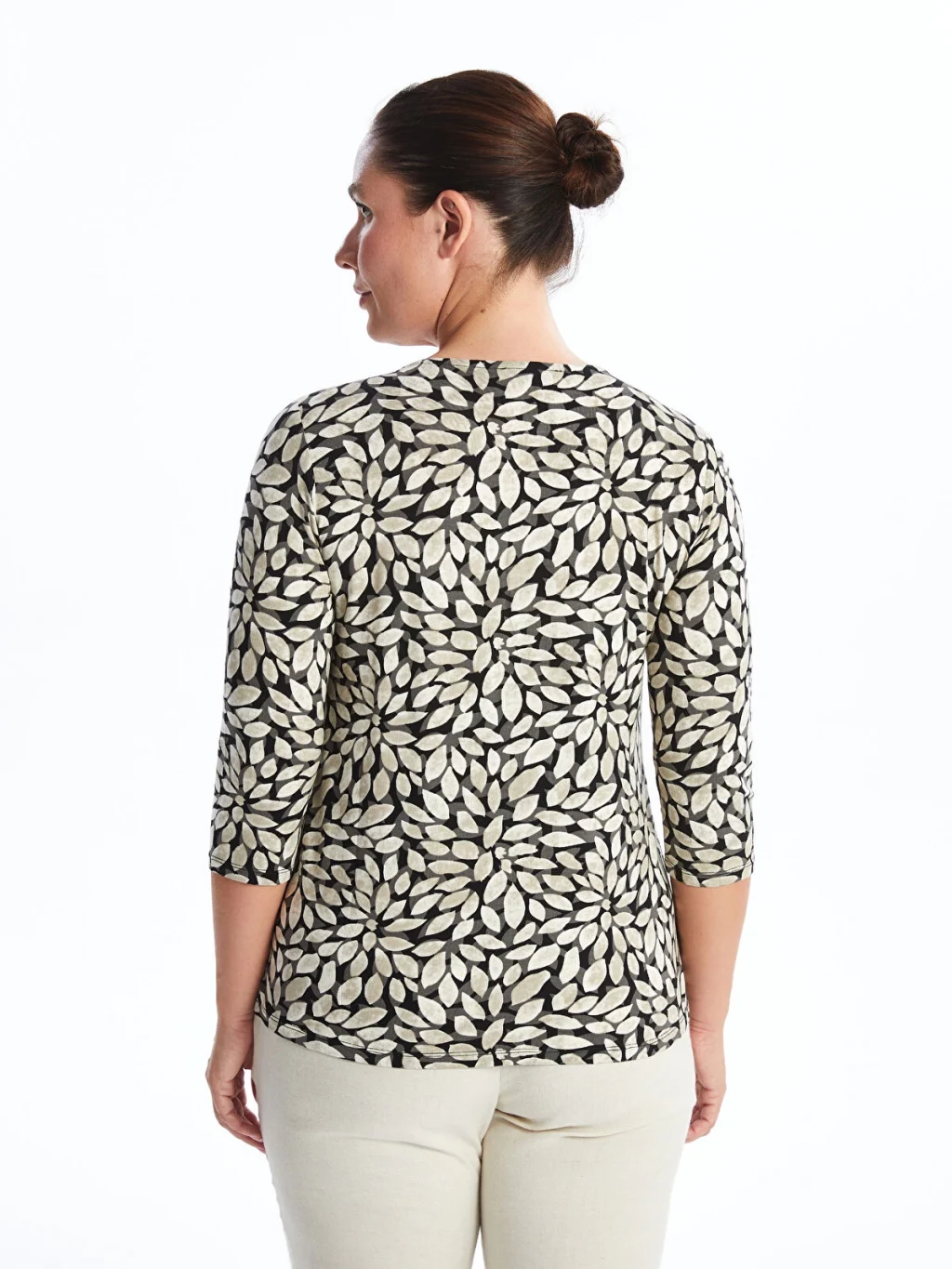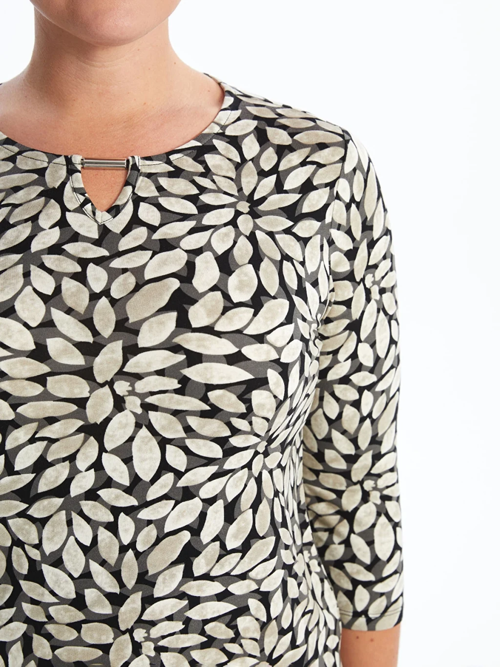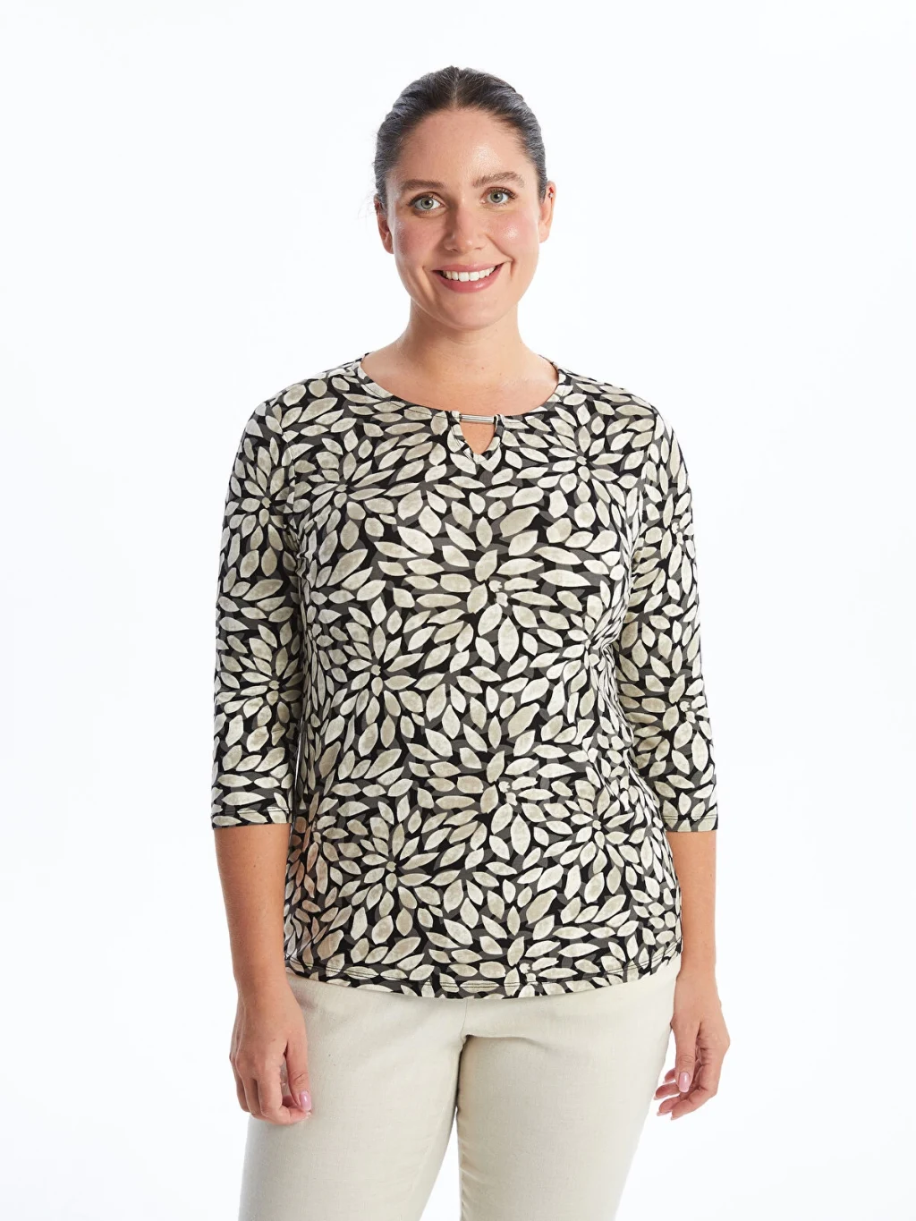 Bisiklet yaka desenli kadın tişört, esnek viskoz elyaftan üretilmiştir. Desenli detaylarıyla tarzınızı yansıtmanıza olanak tanır.