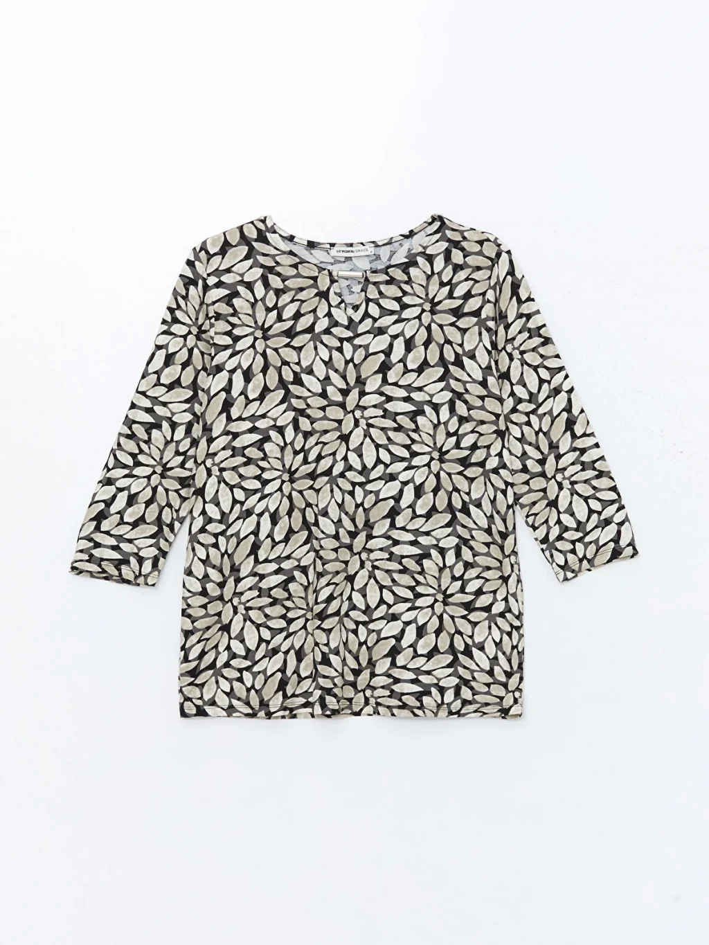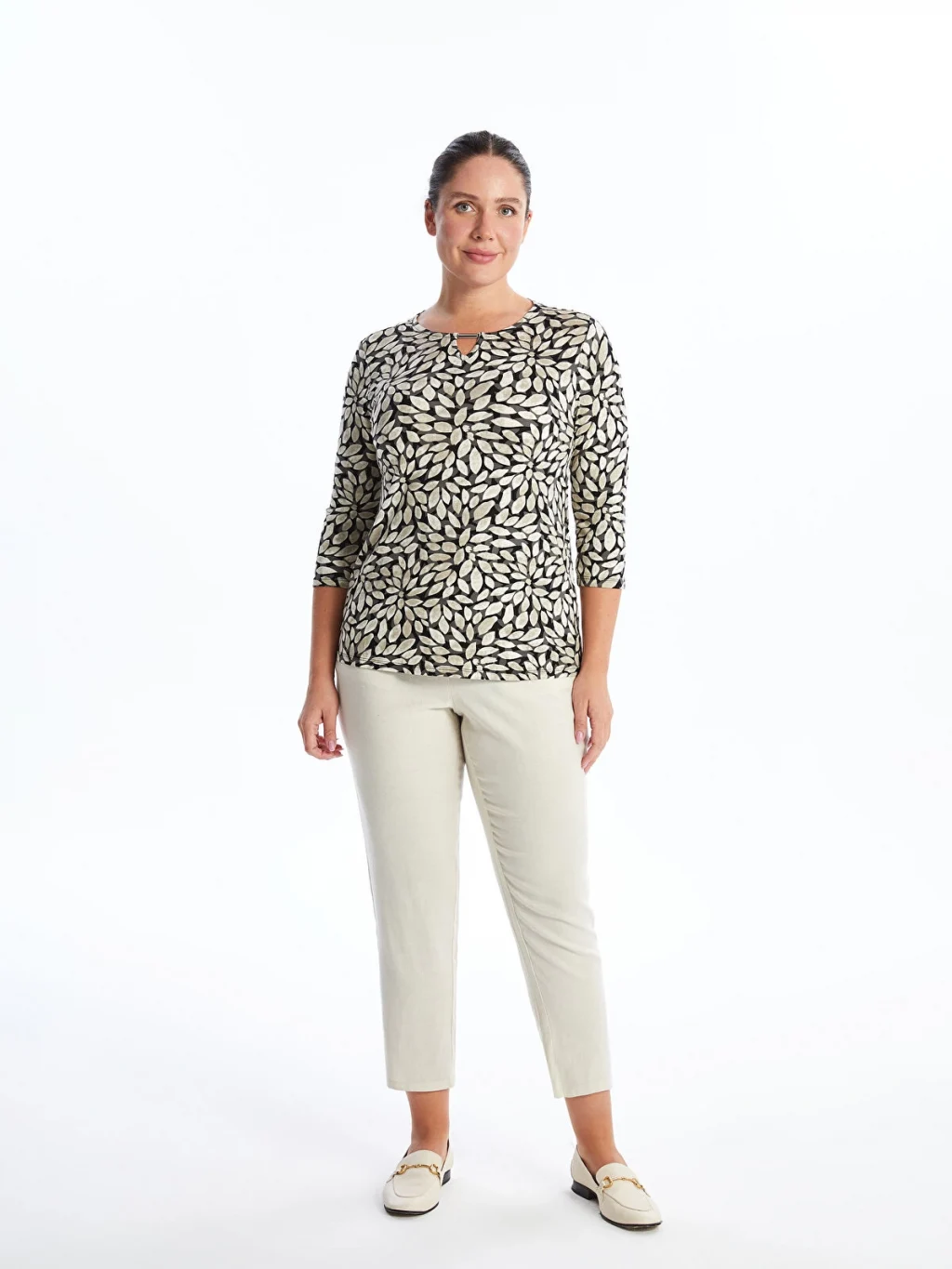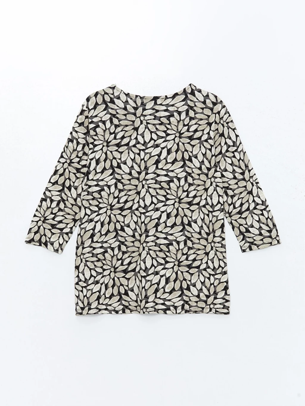 Bisiklet yaka desenli kadın tişört, esnek viskoz elyaftan üretilmiştir. Desenli detaylarıyla tarzınızı yansıtmanıza olanak tanır.