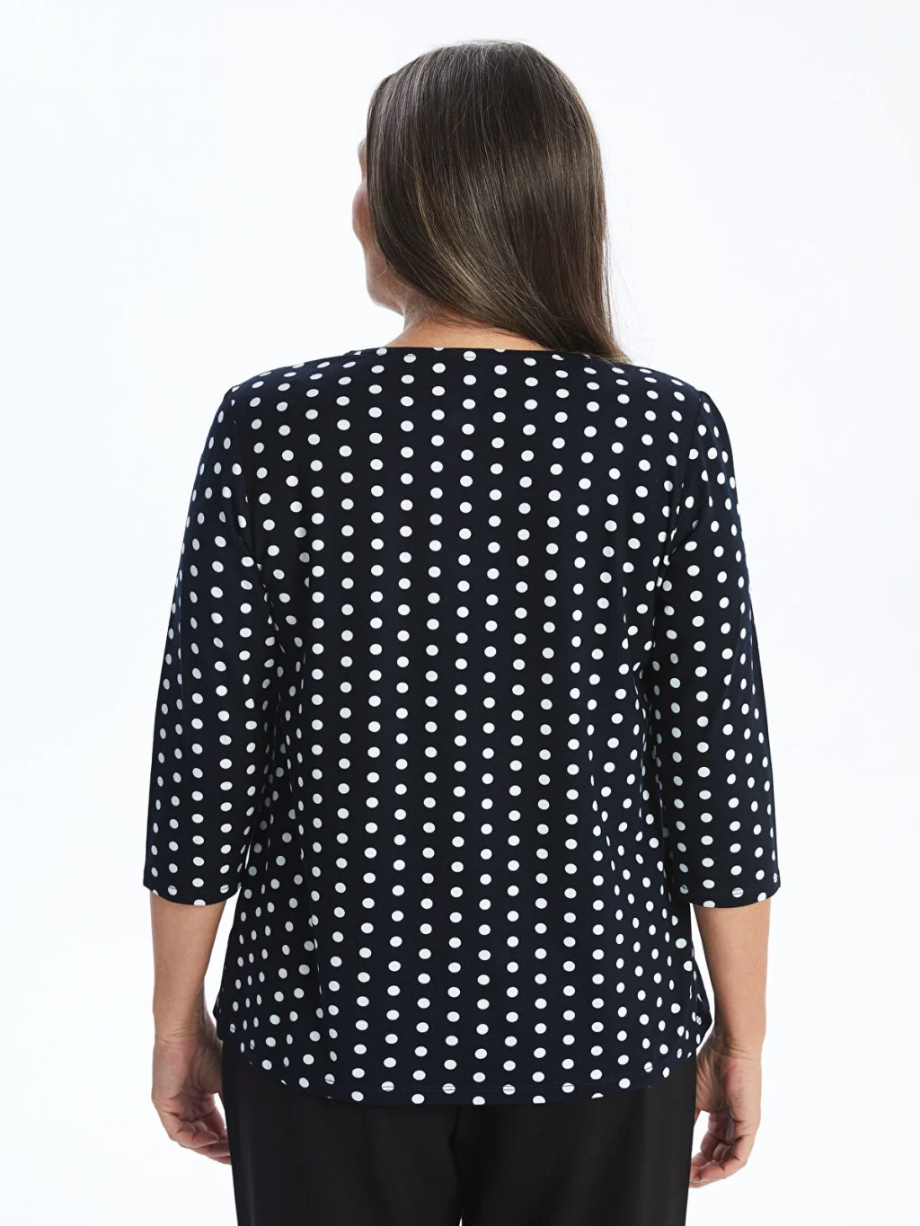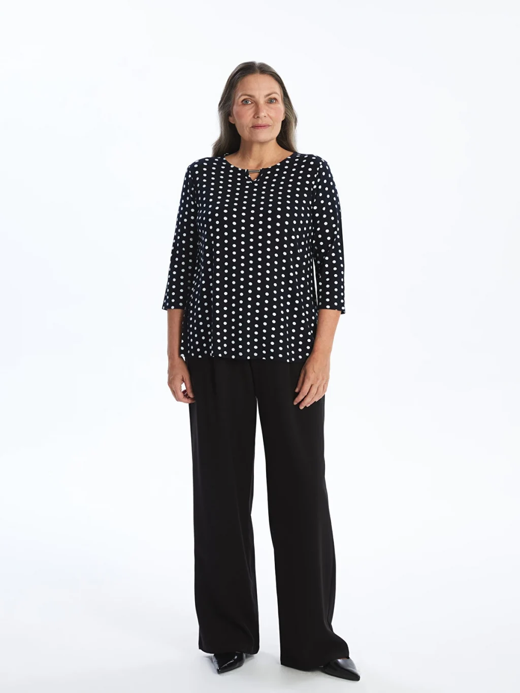 Bisiklet yaka desenli kadın tişört, esnek viskoz elyaftan üretilmiştir. Desenli detaylarıyla tarzınızı yansıtmanıza olanak tanır.