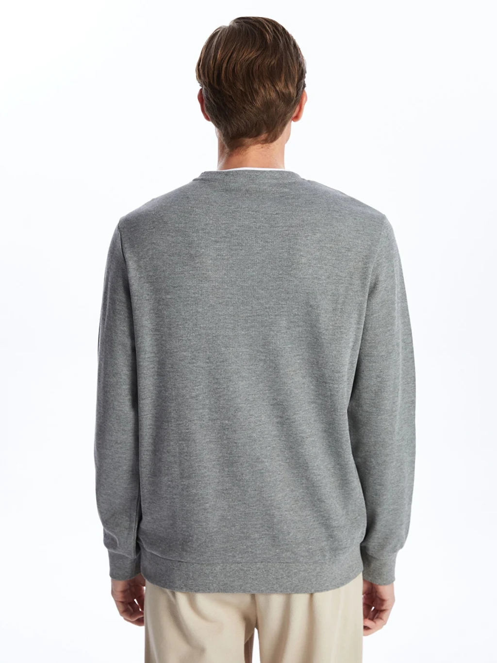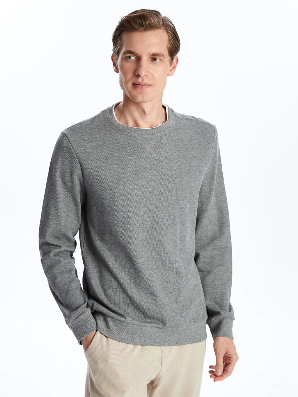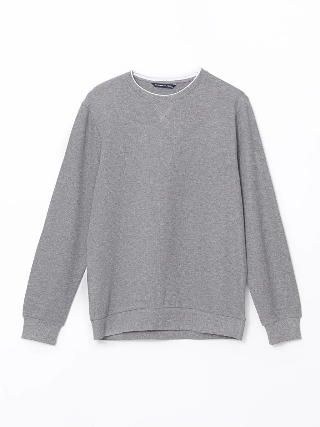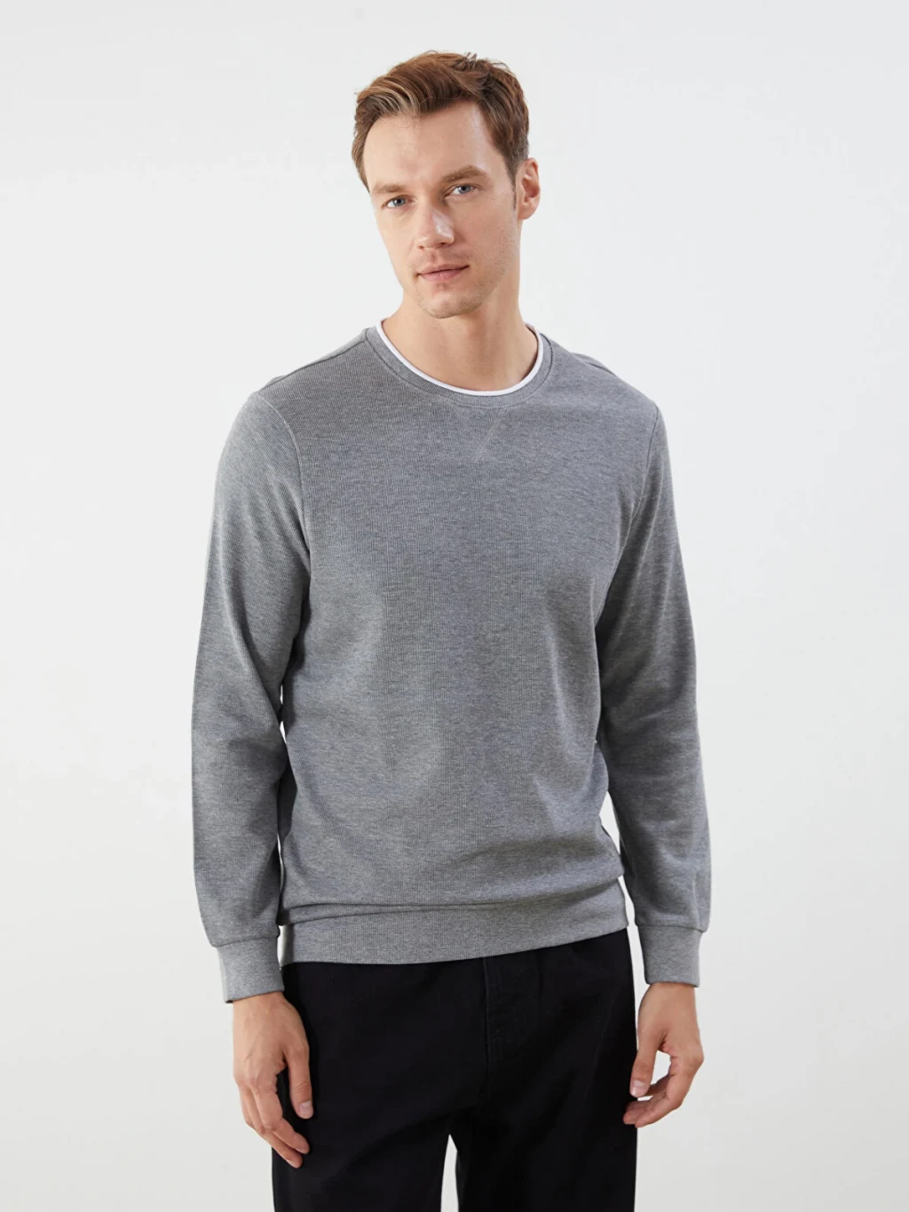 Selanik kumaştan üretilen erkek sweatshirt, bisiklet yakalı ve uzun kolludur. Kol uçları ve etek ucu ribanalıdır.