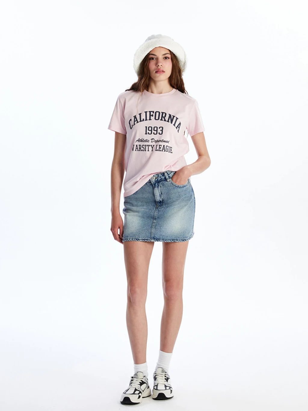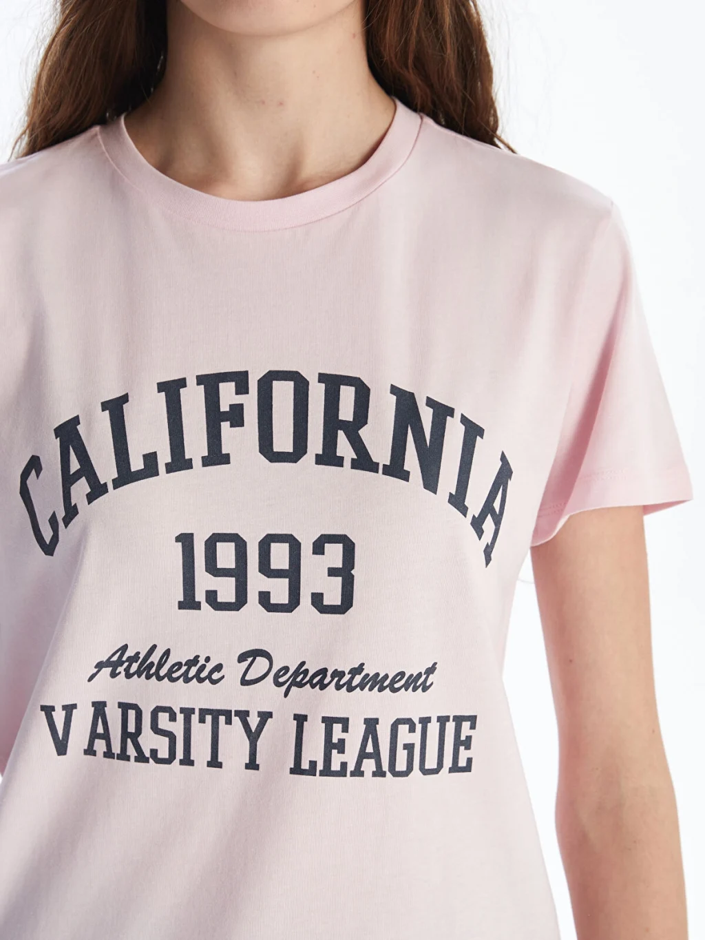 XSIDE Pembe Bisiklet Yaka California Baskılı Kadın Tişört