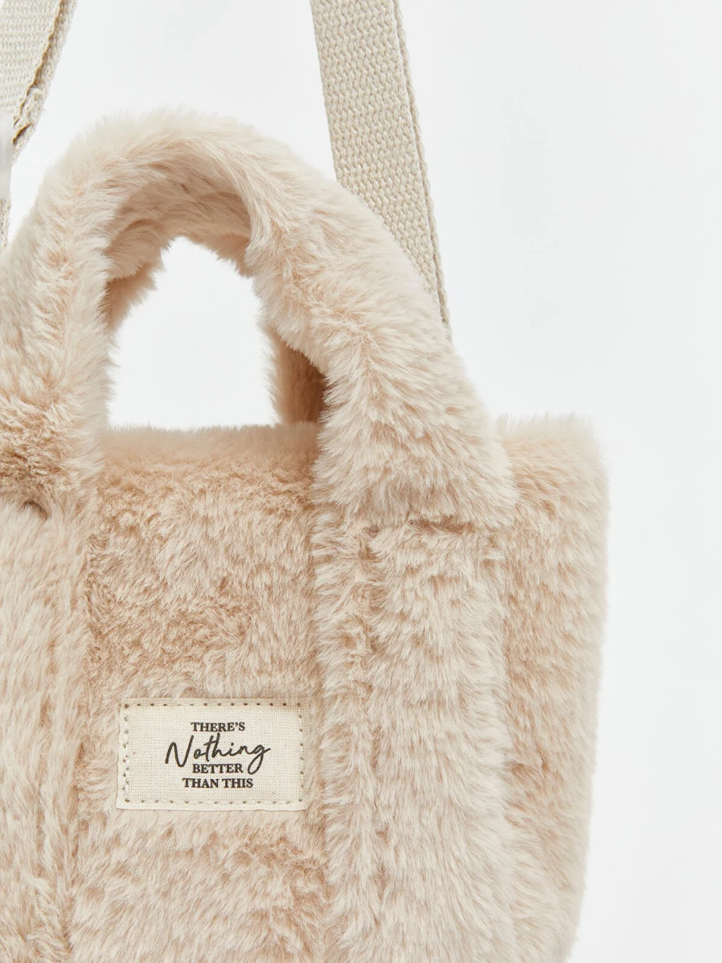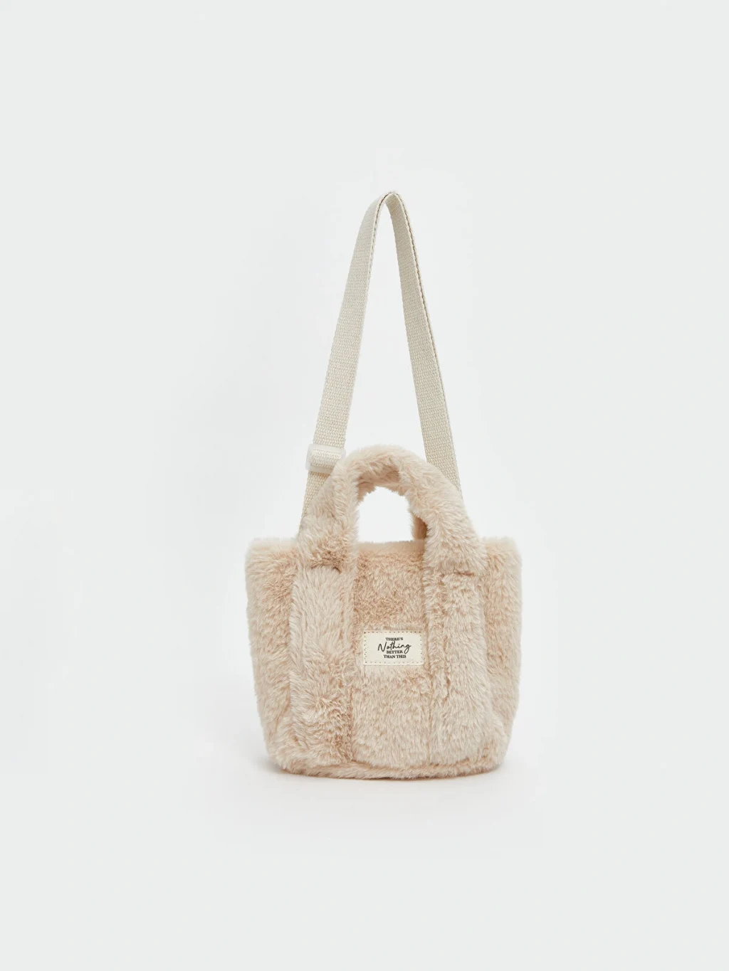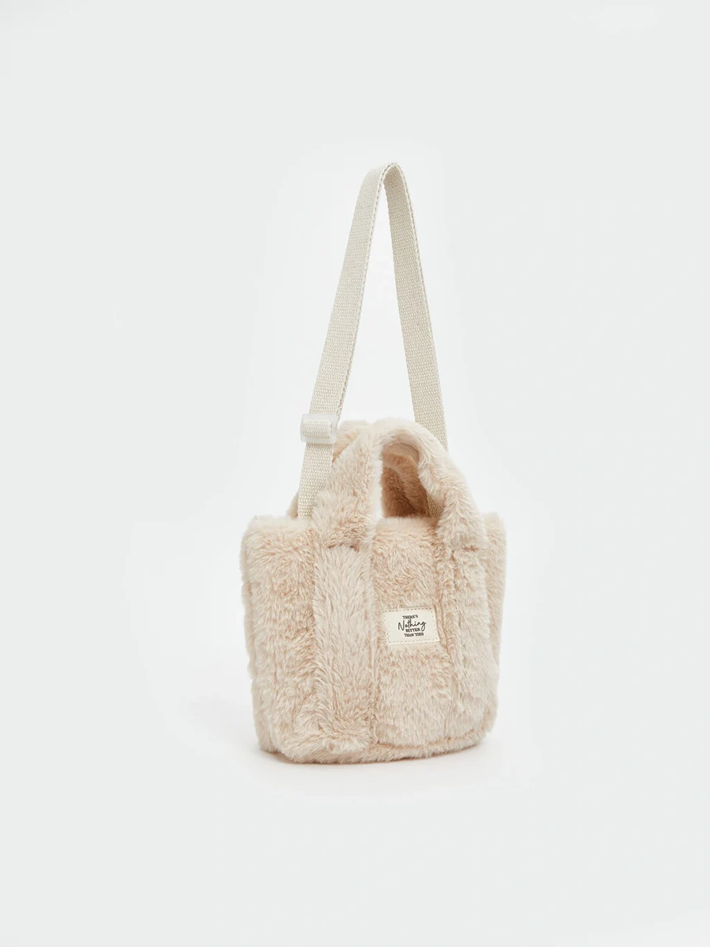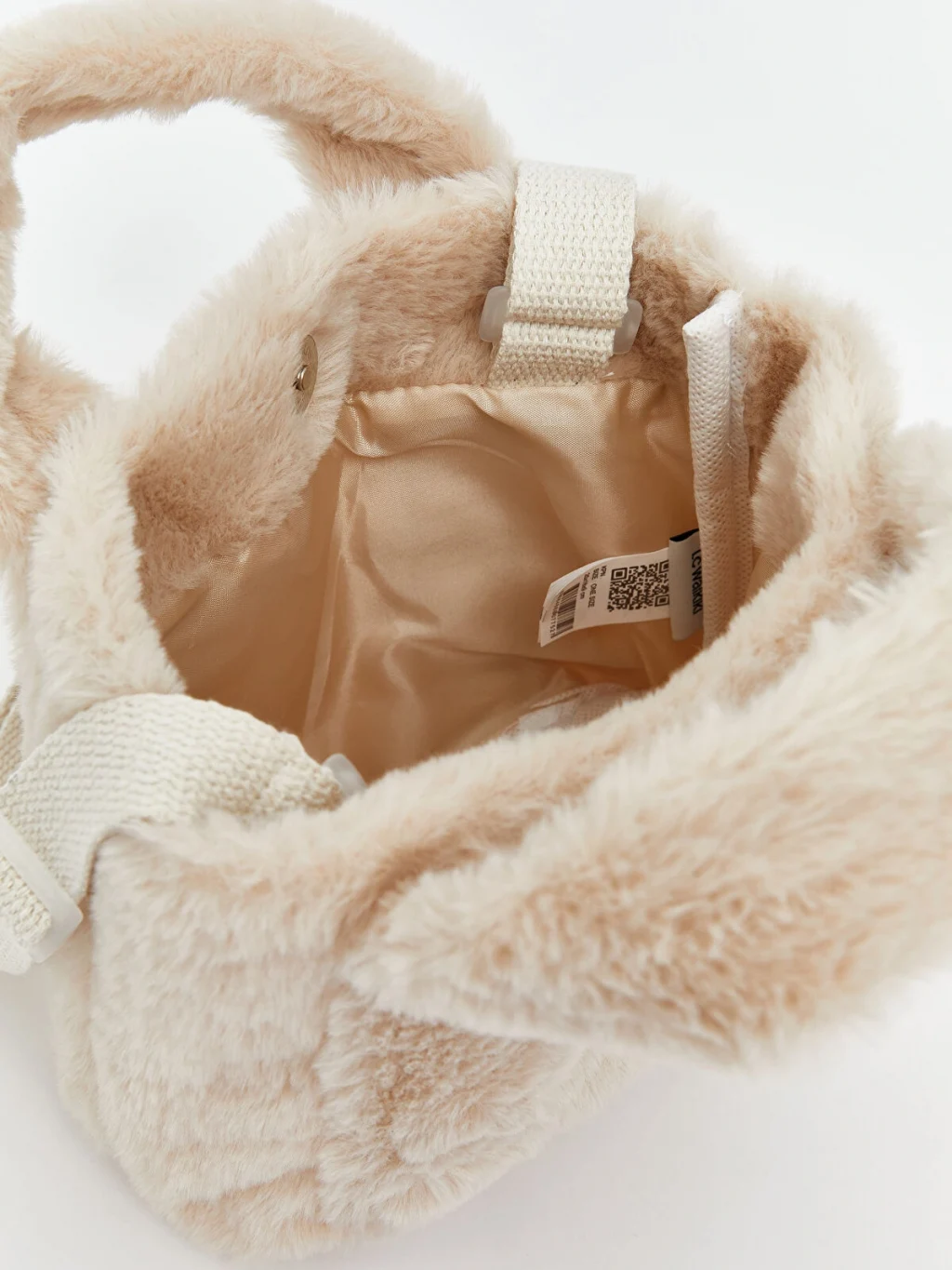 Pelüş kumaştan üretilmiştir, hem elde hem de omuzda taşınabilir.