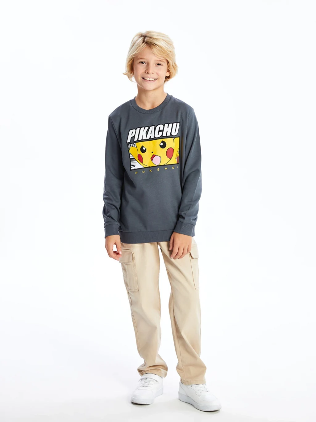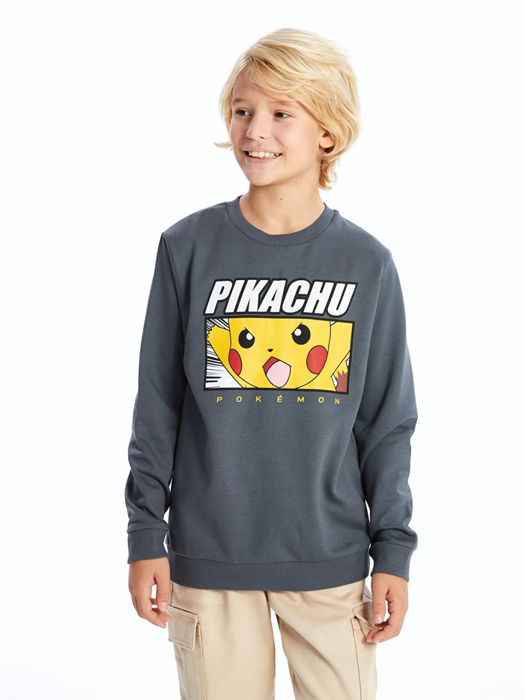 Bisiklet yaka, 2 iplik şardonlu kumaştan üretilen sweatshirt, çocukların favorisi Pikachu baskısıyla kombinlere hem rahat, hem de stil sahibi bir seçenek sunuyor.