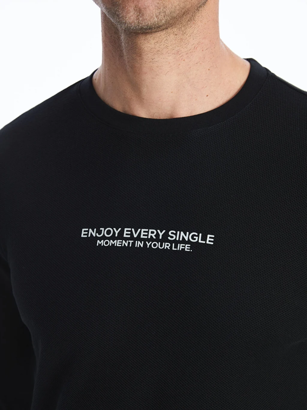 Uzun kollu tasarımıyla dikkat çekerken, pamuk karışımlı kumaşıyla da konfor sunar. Şık ve özgün baskı detaylarıyla tarzınızı yansıtabilir, rahatlıktan ödün vermeden stilinizi tamamlayabilirsiniz.
