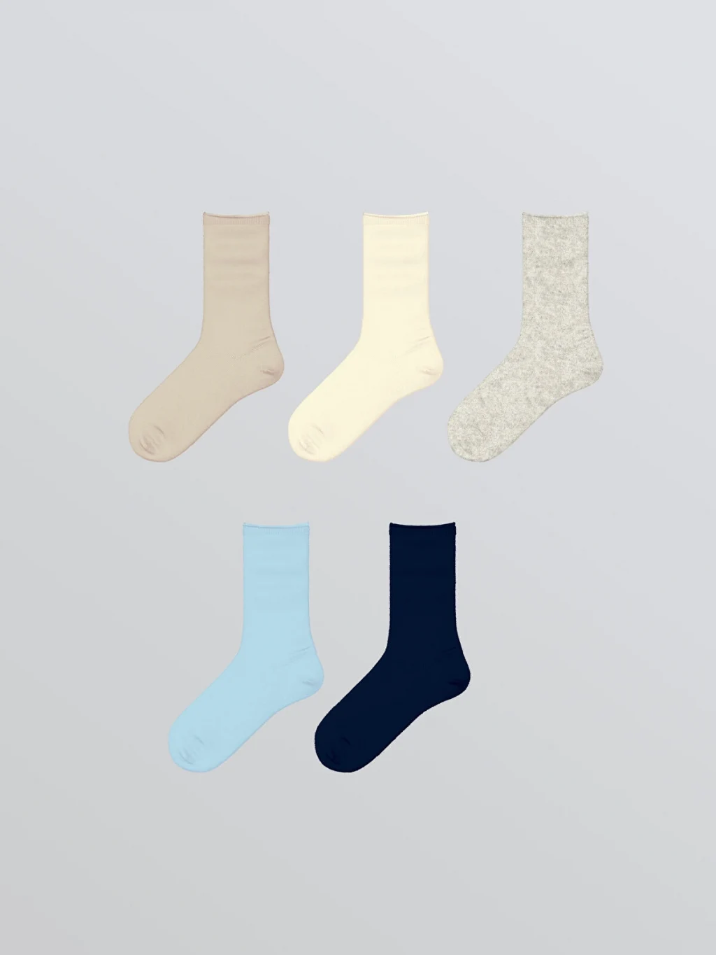 Kadın çorap seti, basic tasarıma sahip 5 çift soket çoraptan oluşur. Pamuk karışımlı kumaştan üretilmiştir.