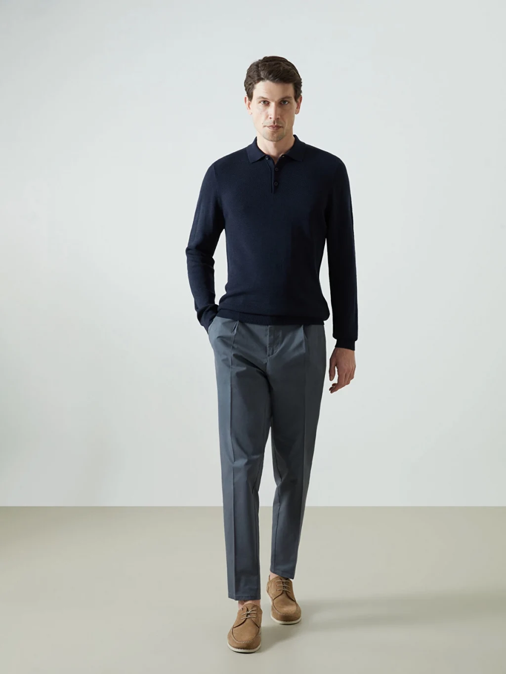 Triko kumaştan yapılmış düz kazak, uzun kollu tasarımıyla şıklığı ve konforu bir araya getirir. Polo yaka detayı, modern bir tarz sunarken, kaliteli triko kumaşı sıcak tutar ve rahat bir giyim deneyimi sunar.