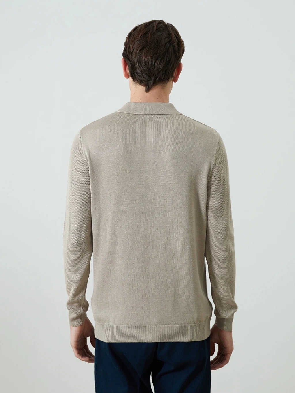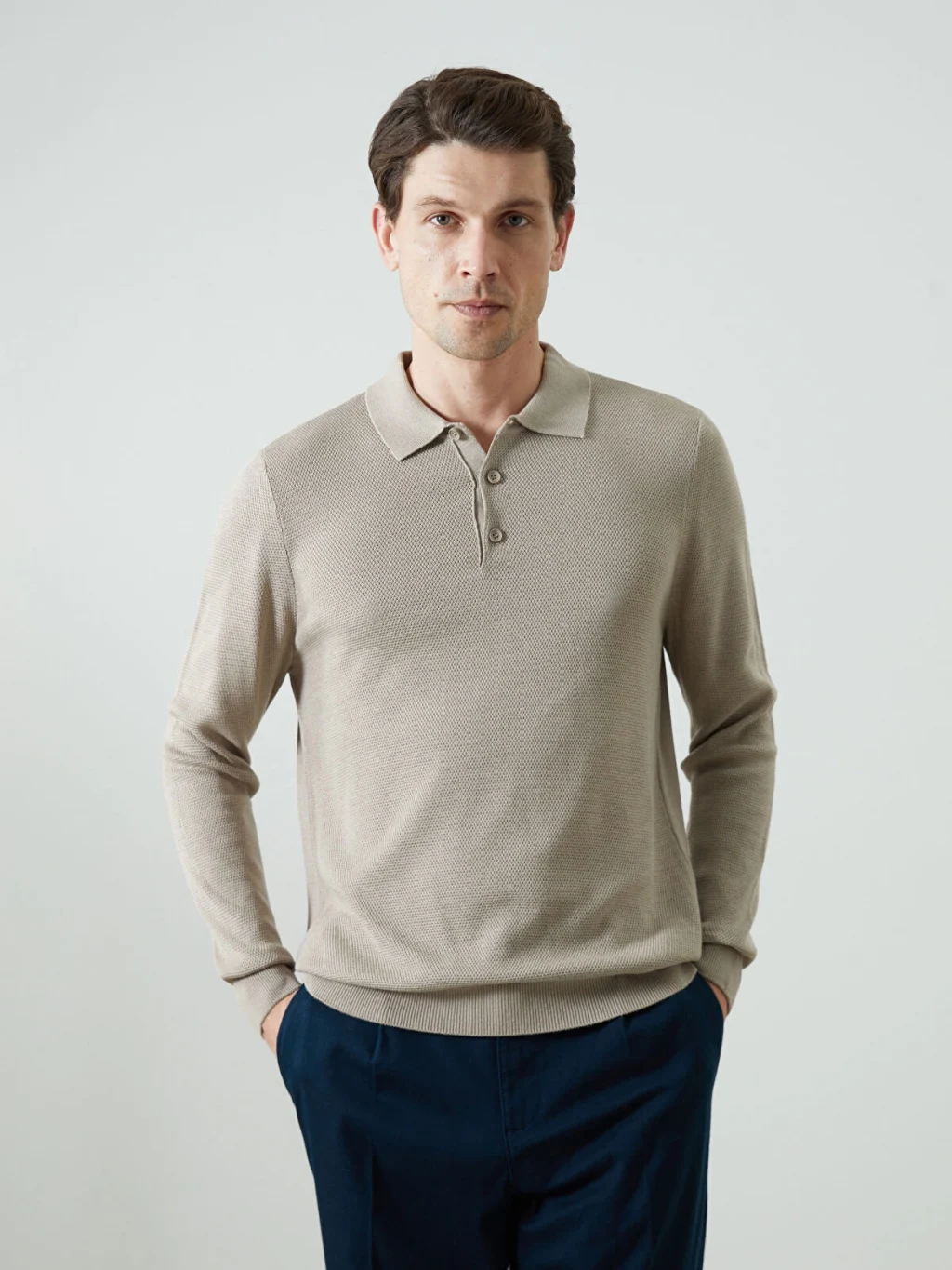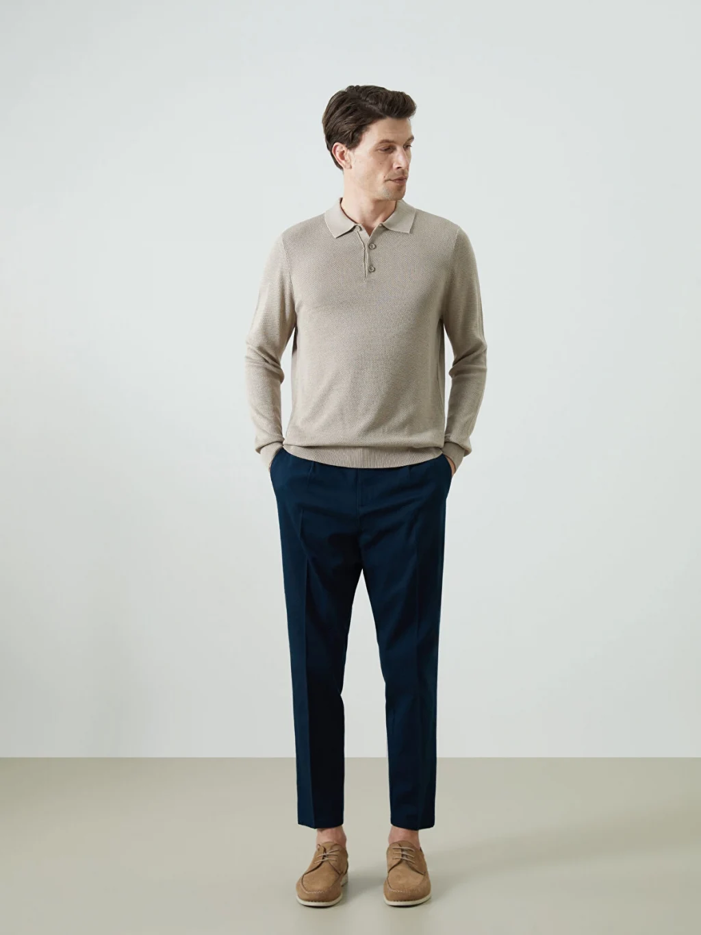 Triko kumaştan yapılmış düz kazak, uzun kollu tasarımıyla şıklığı ve konforu bir araya getirir. Polo yaka detayı, modern bir tarz sunarken, kaliteli triko kumaşı sıcak tutar ve rahat bir giyim deneyimi sunar.