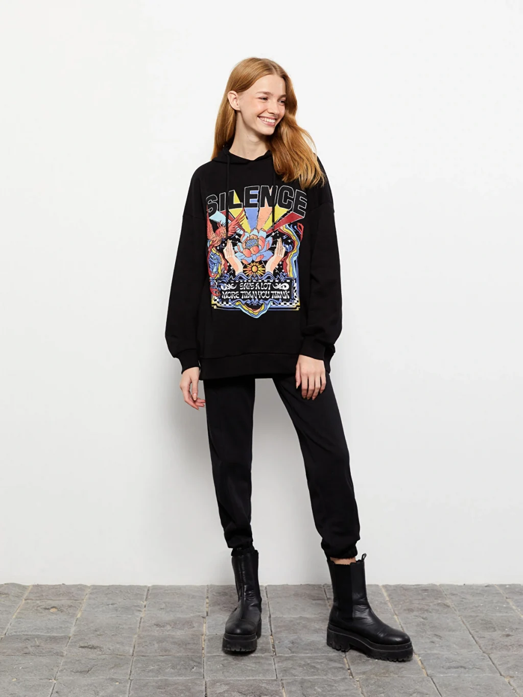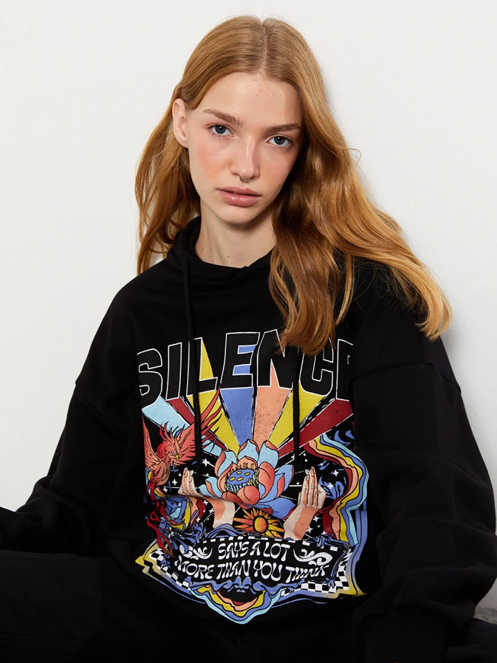 İçi yumuşak tüylü sweatshirt kumaşından Bilekleri ve alt kısmı ribanalı Bağcıklı sabit kapüşon