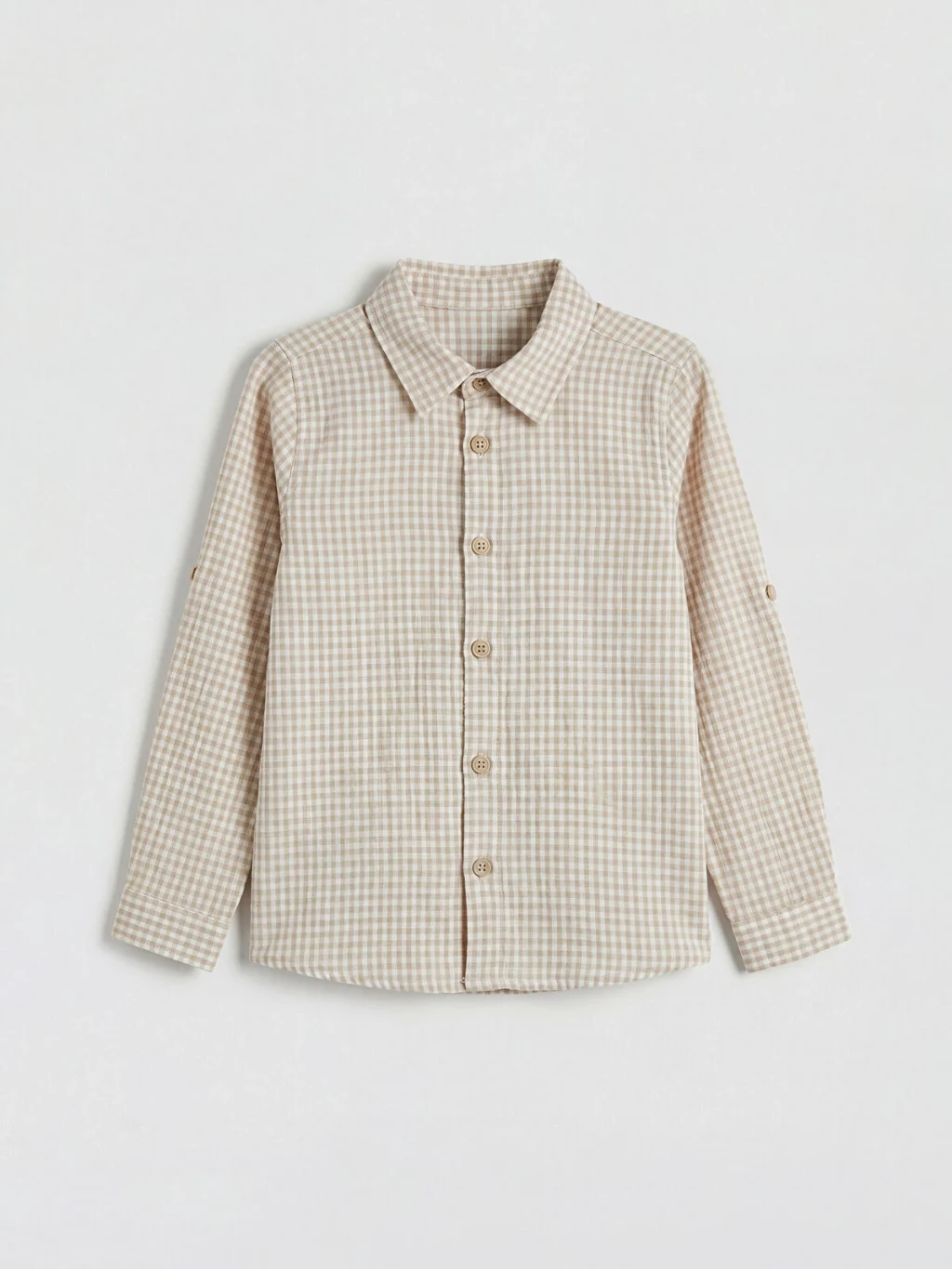 Uzun kollu erkek gömlek, %100 pamuklu kumaştan üretilmiştir. Kolları katlanabilir apolet detaylıdır.