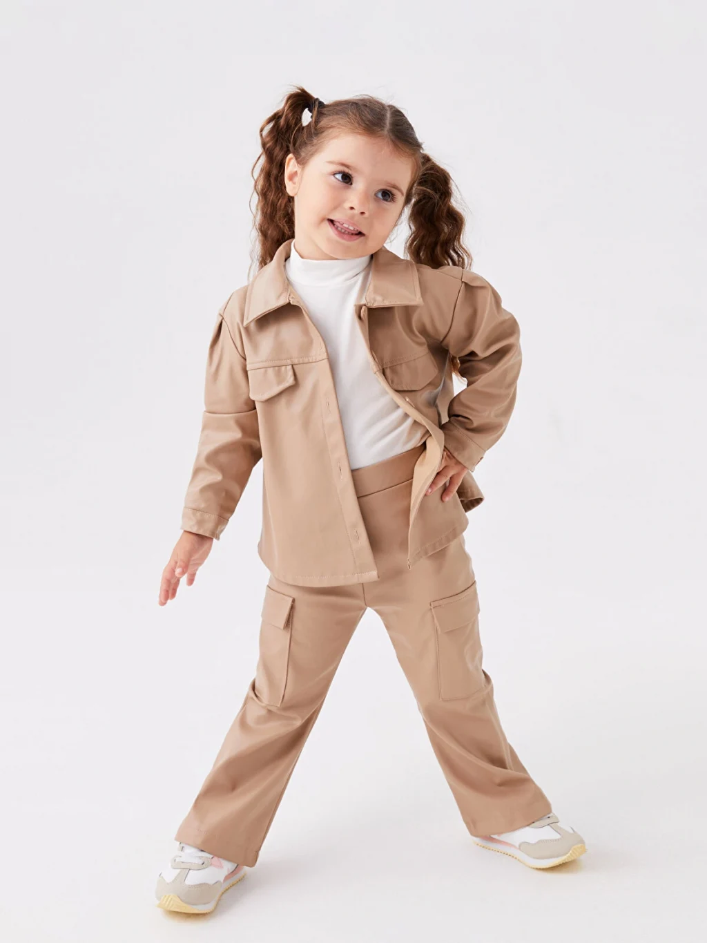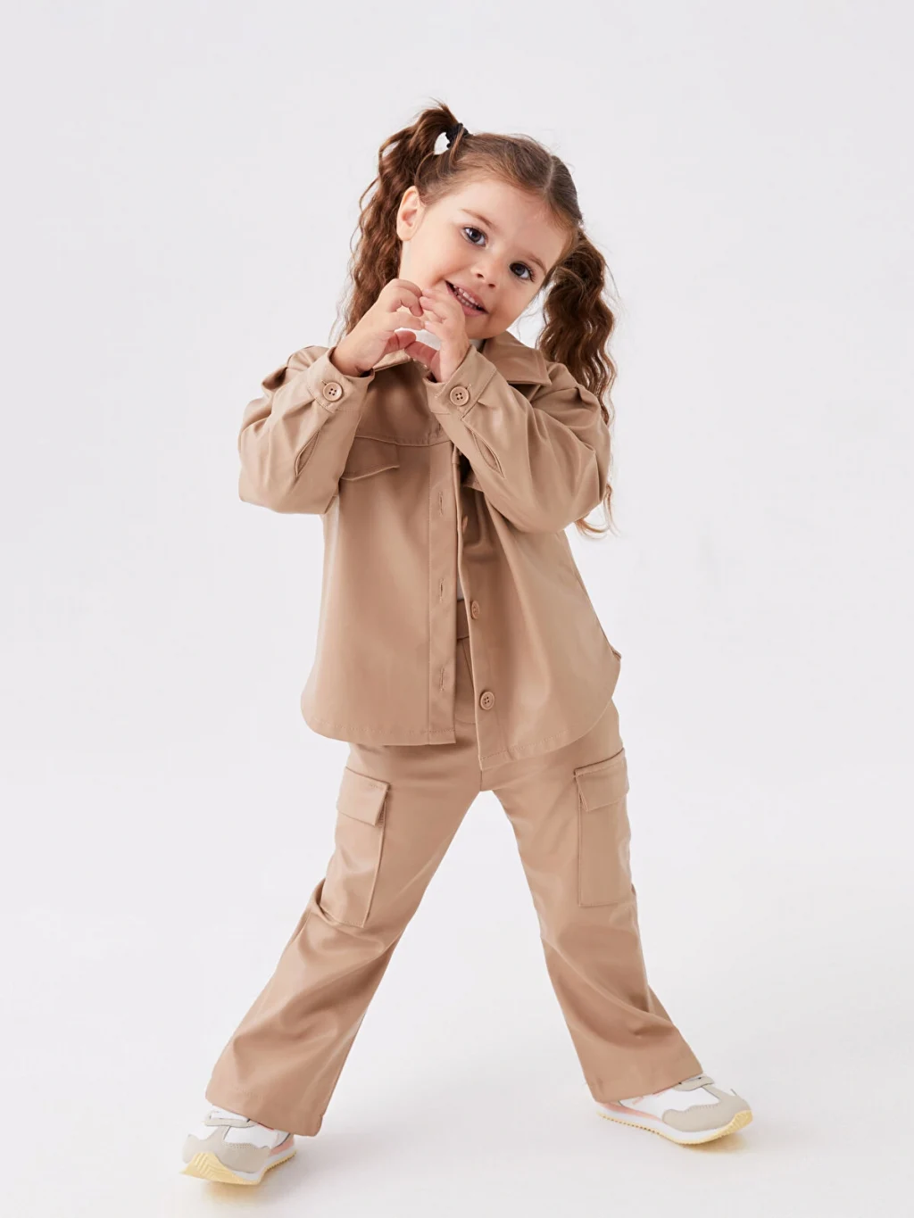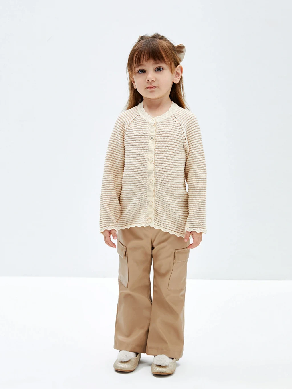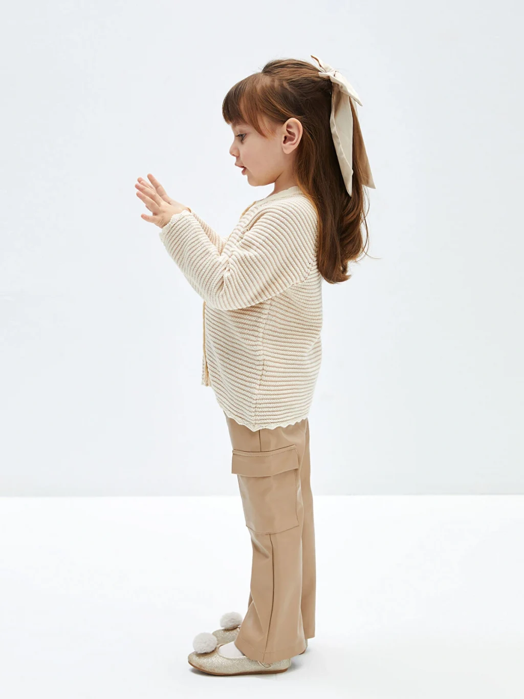LCW Kids Bej Bisiklet Yaka Baskılı Uzun Kollu Kız Çocuk Tişört