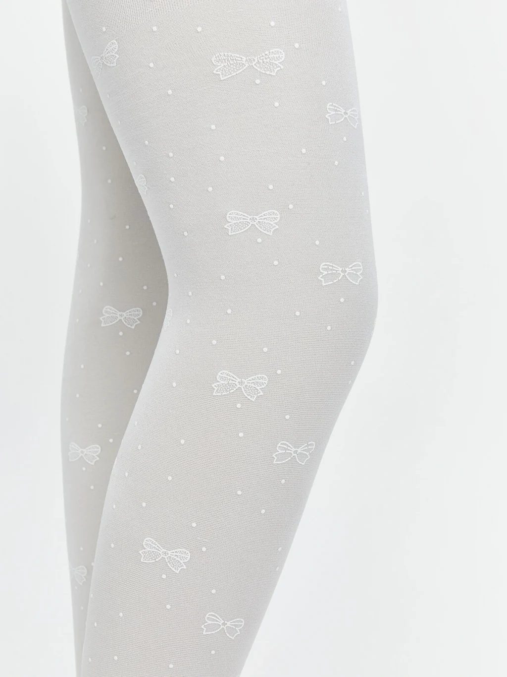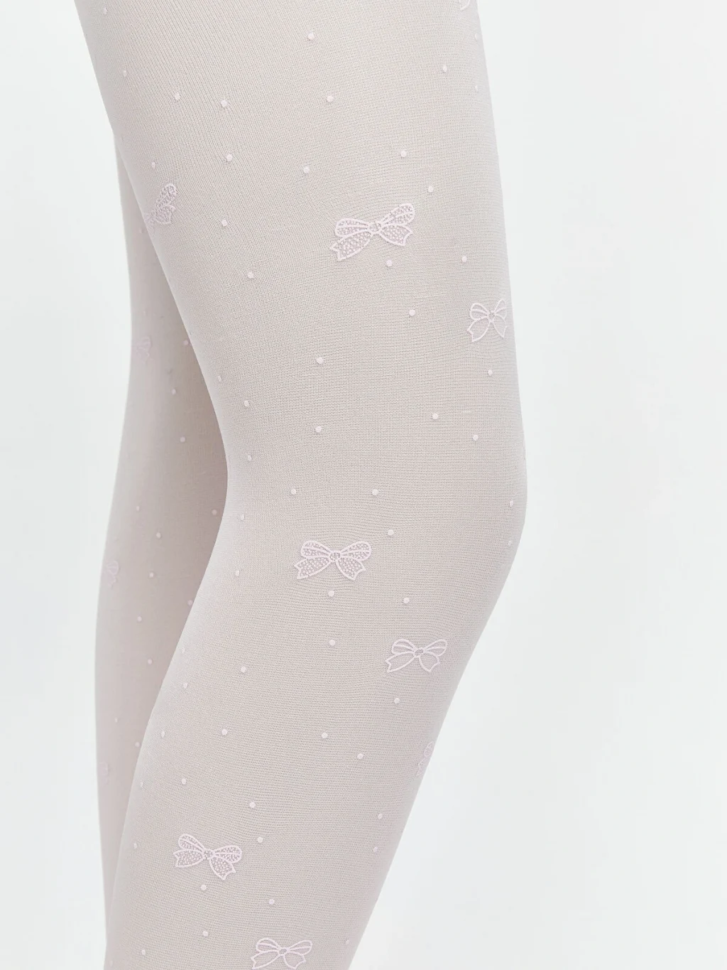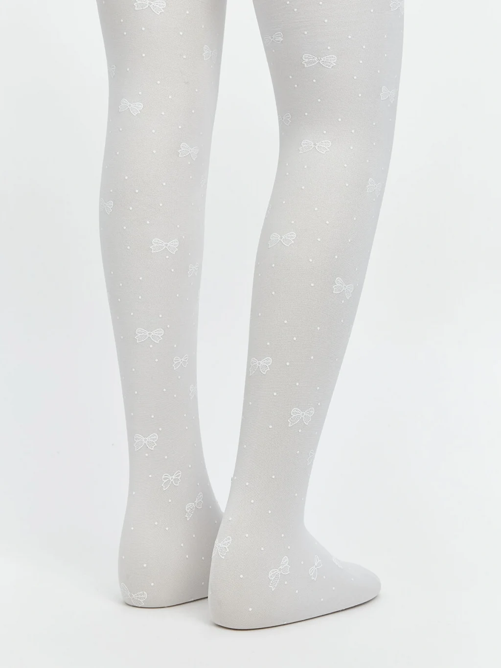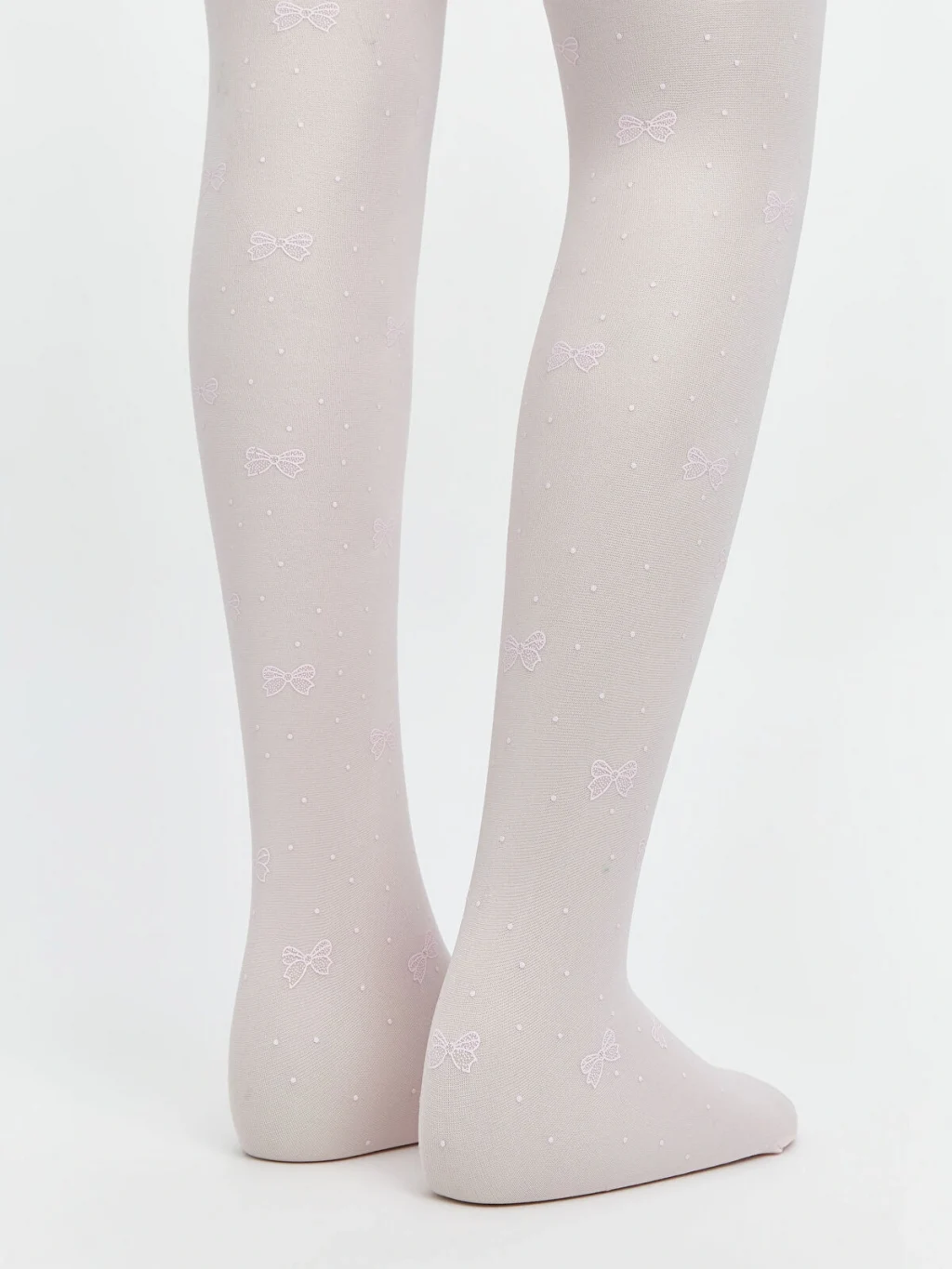 Fiyonk desenli 2'li kız çocuk külotlu çorap, esnek bel bandına ve patikli tasarıma sahiptir.