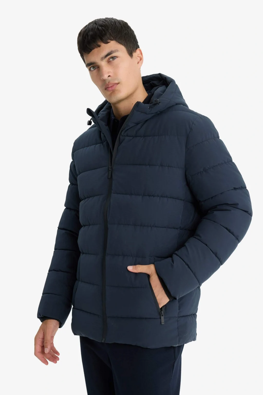 Slim fit ve dar kesimiyle bu kapüşonlu mont, astarlı yapısı ve su itici dış yüzeyi sayesinde soğuk ve yağışlı havalarda sıcaklık ve koruma sağlar. Fermuarlı ve cepli tasarımı ile pratik kullanım sunar.