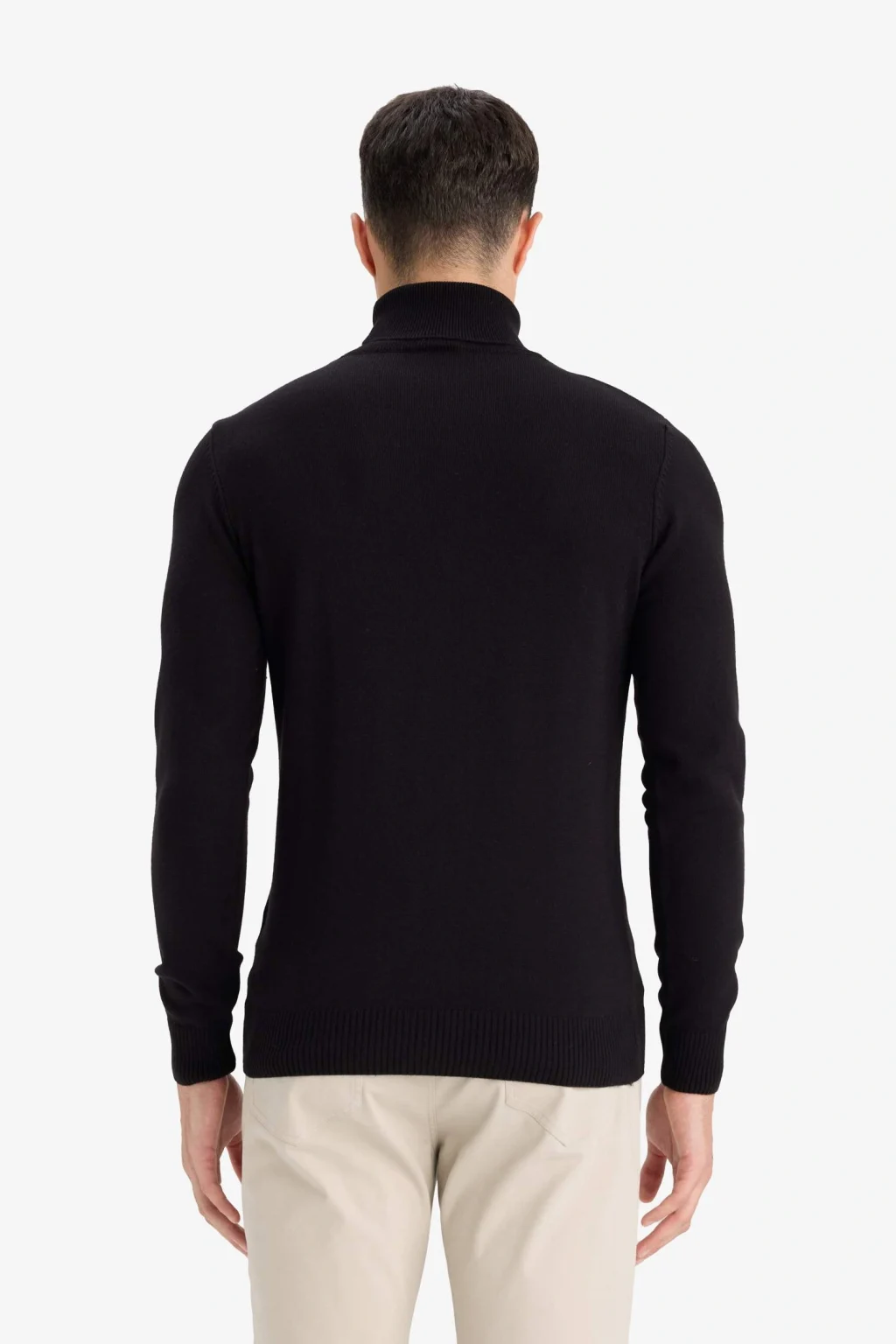 Defacto R1124AZBK27 Siyah Slim Fit Dar Kesim Balıkçı Yaka Basic Düz Triko Kazak
