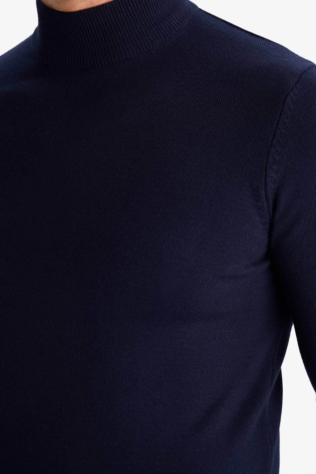 Defacto R1127AZNV207 Lacivert Slim Fit Dar Kesim Balıkçı Yaka Basic Düz Triko Kazak