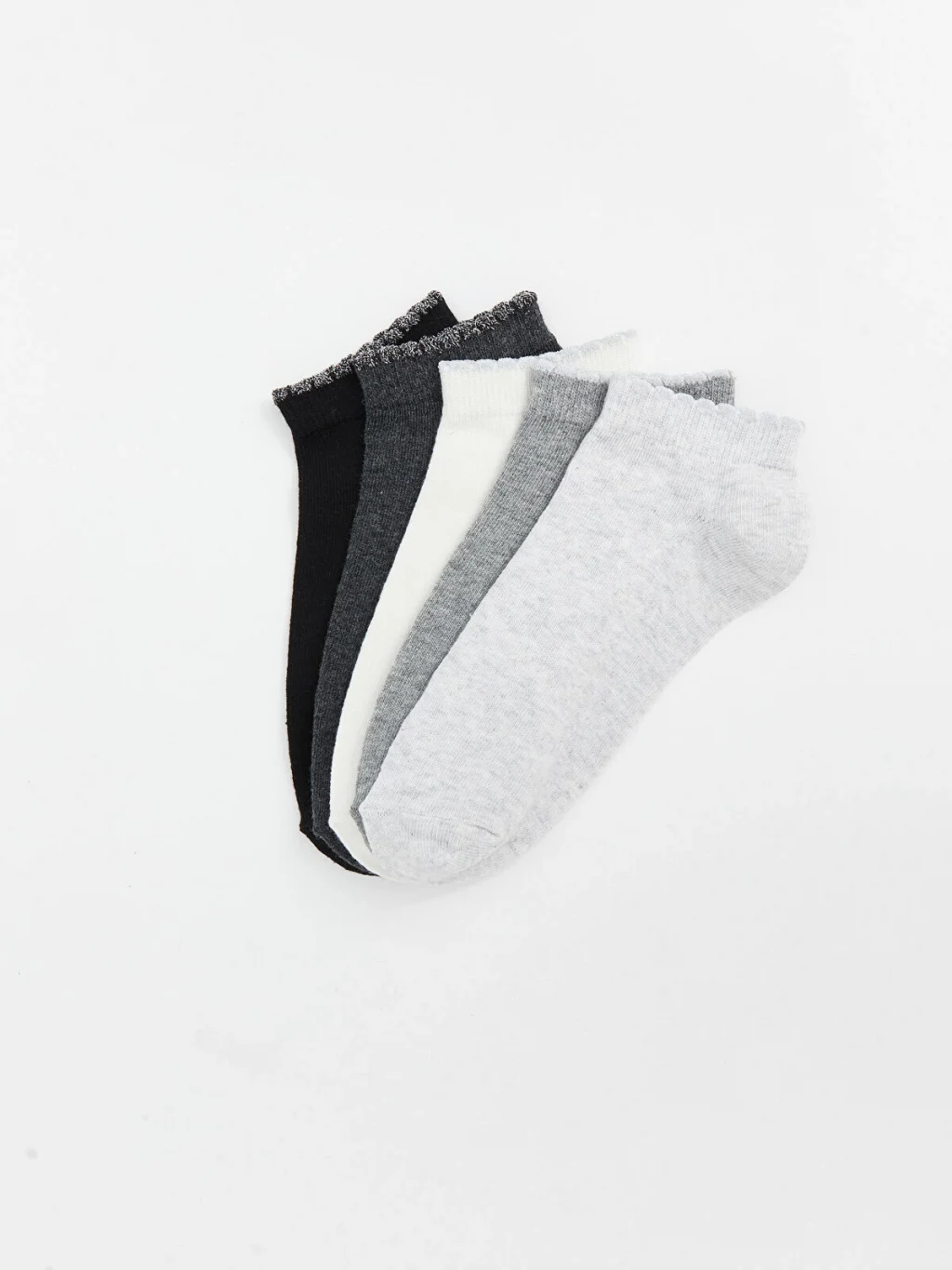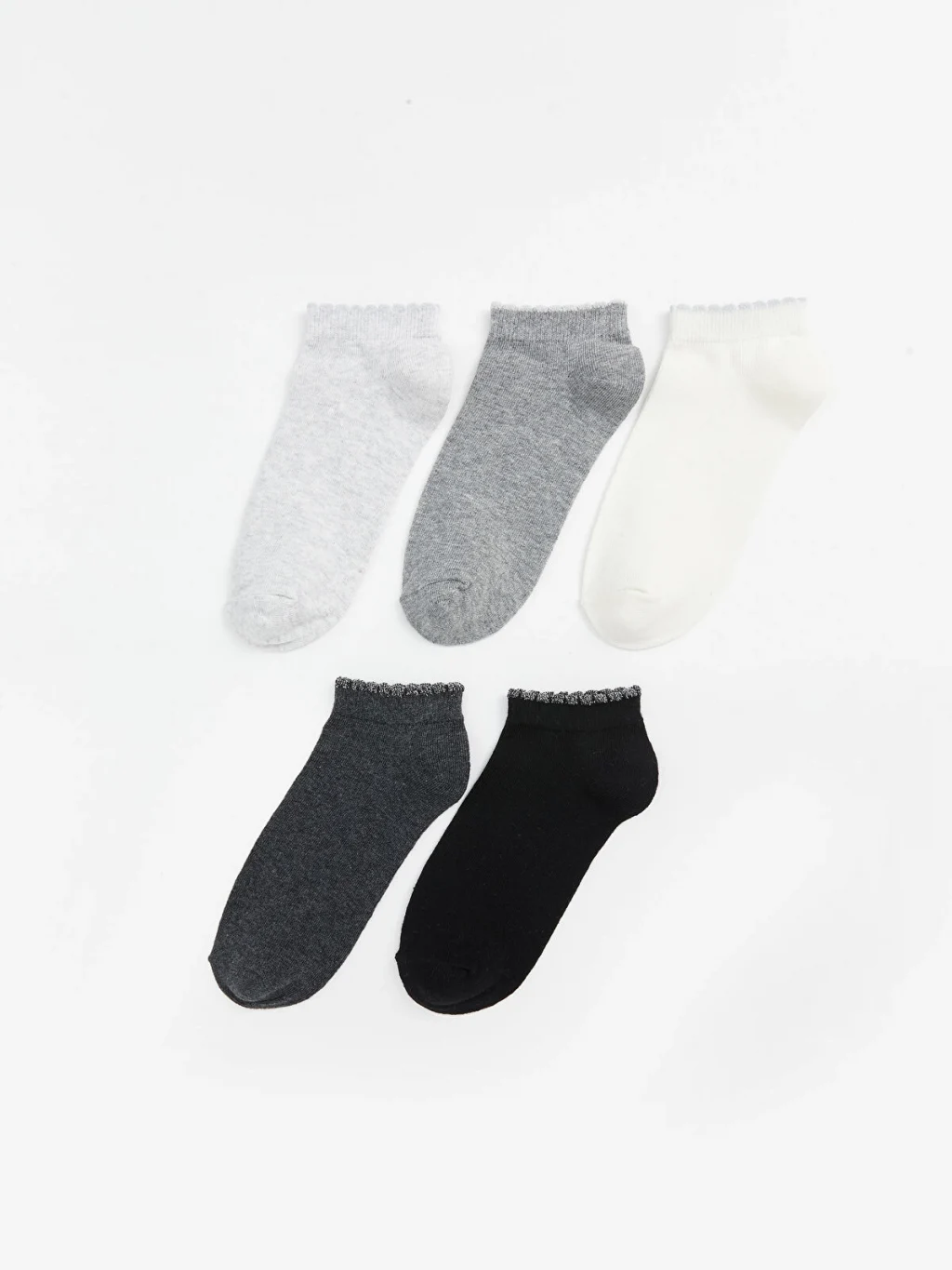 Pamuk karışımlı elyaftan üretilen patik çoraplar, yumuşak ve konforlu bir dokuya sahiptir. Düz, sade tasarımıyla doğal bir görünüm sunar ve 5 çift patik çoraptan oluşmaktadır.
