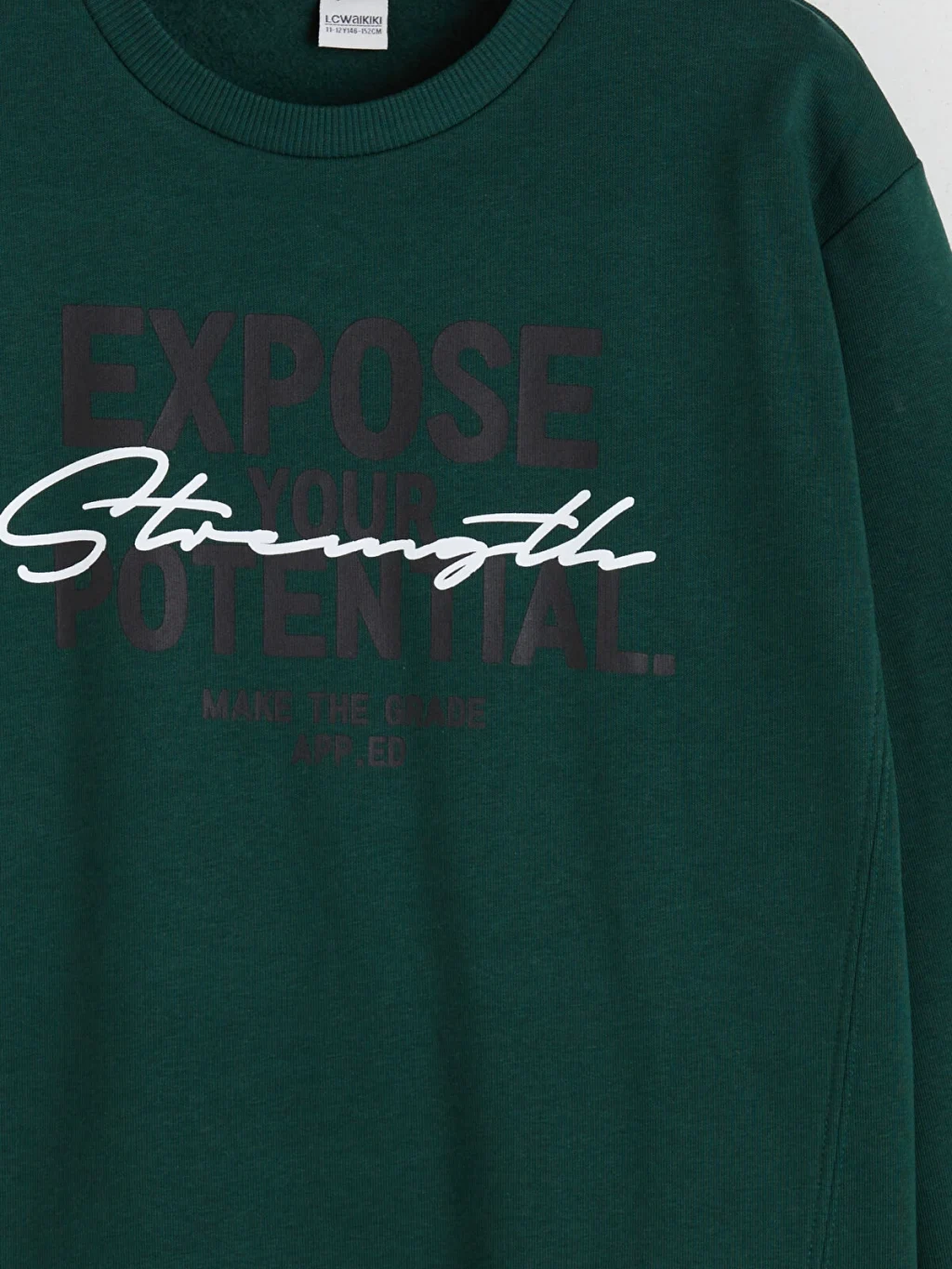 Yüksek pamuk içerikli, kalın 3 iplik kumaştan üretilen erkek çocuk sweatshirt, bisiklet yaka ve uzun kolludur. Önünde yazı baskısı bulunur.