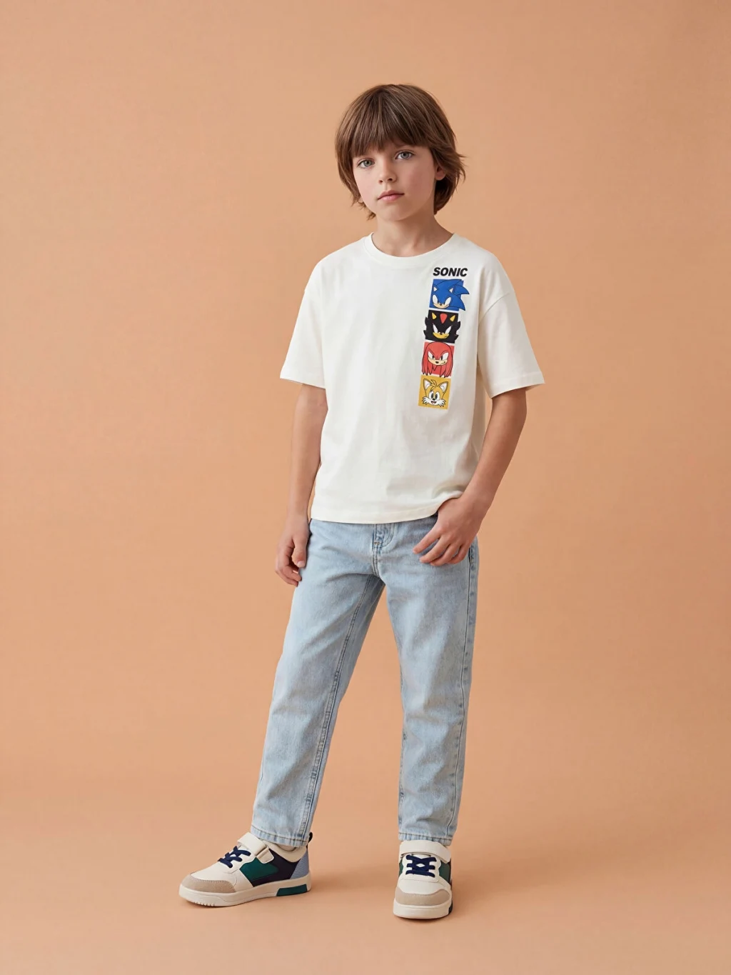 Erkek çocuk pantolon denim kumaştan üretilmiştir, beli ayarlanabilir lastikli detayına sahiptir.