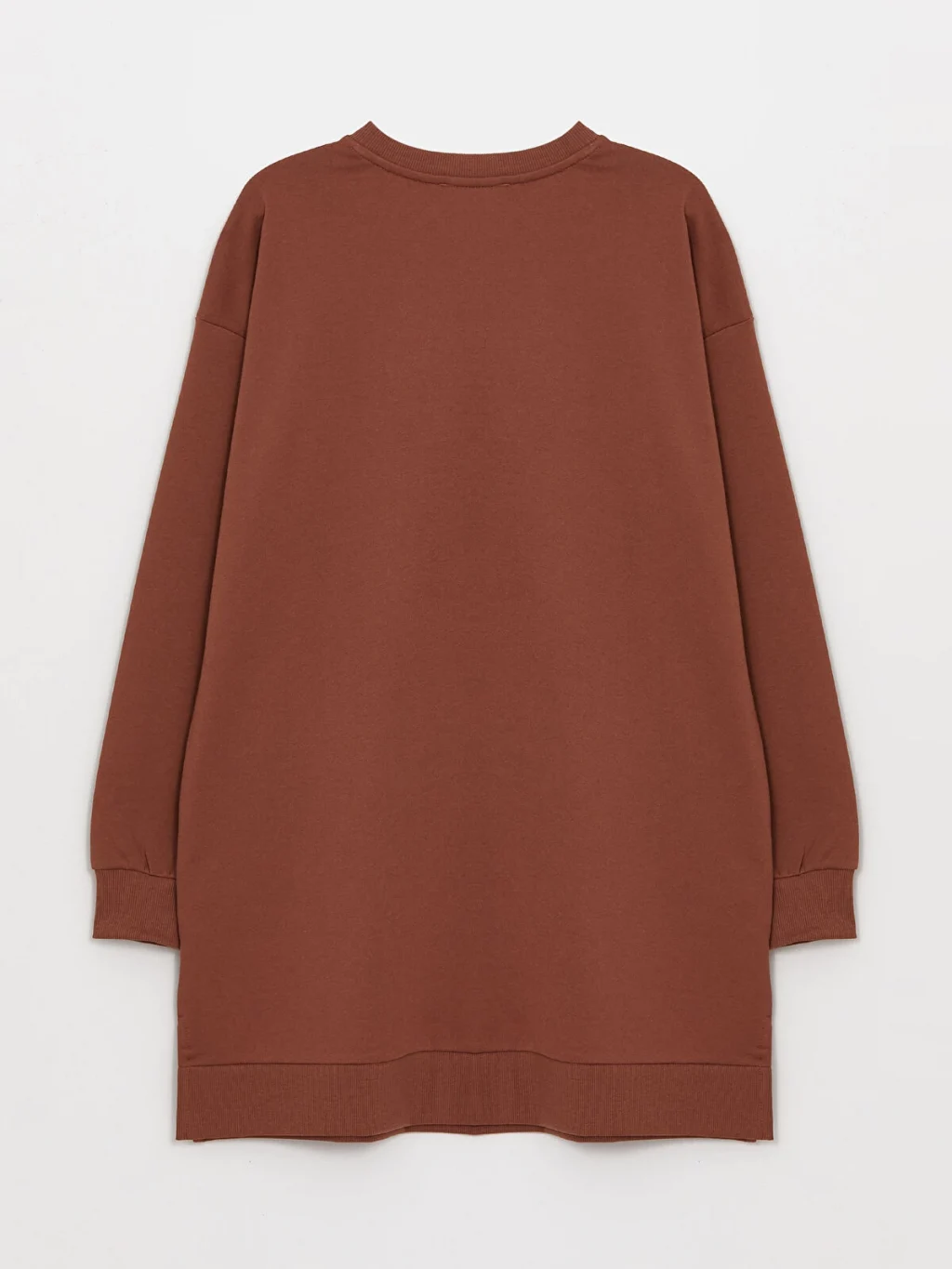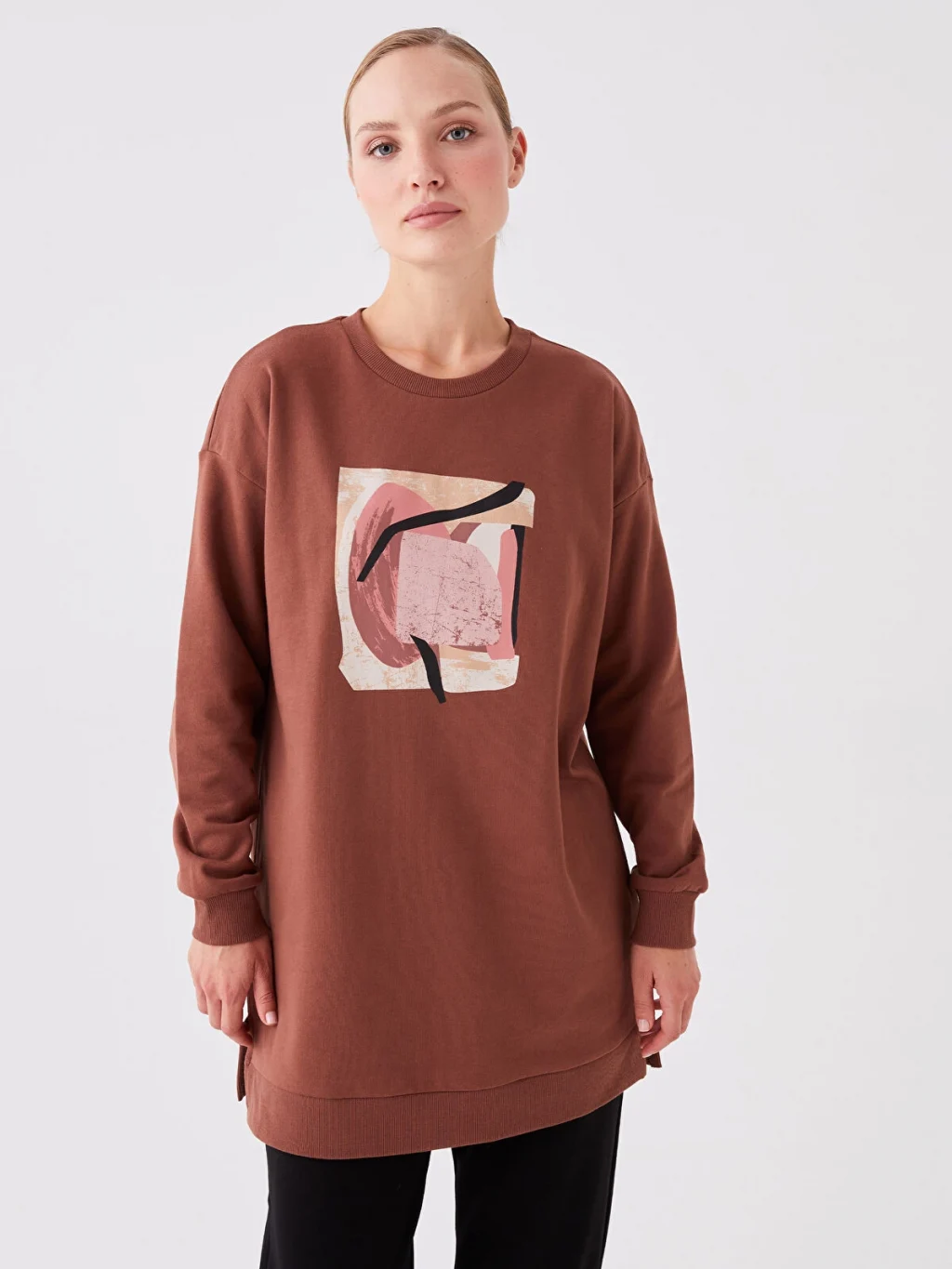 Uzun kollu baskılı tunik, iki iplik kumaştan üretilmiştir ve dayanıklı bir yapıya sahiptir. Bilekleri ribanalı tasarımı, düzgün bir görünüm sunar. Basen boy uzunluğu ve oversize kesimi ile modern bir stil oluşturur ve hareket özgürlüğü sağlar.
