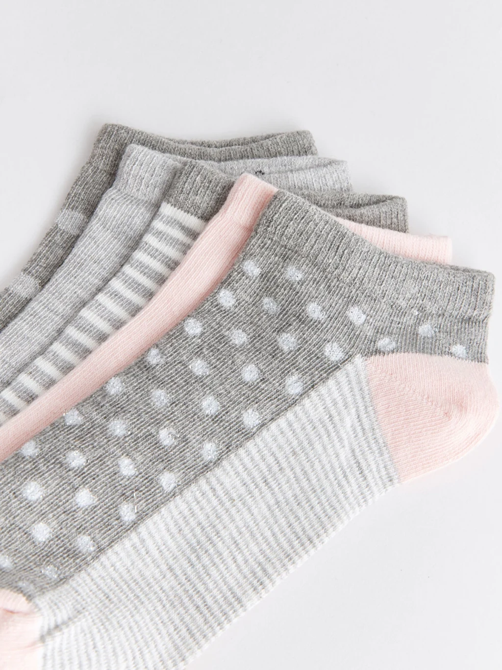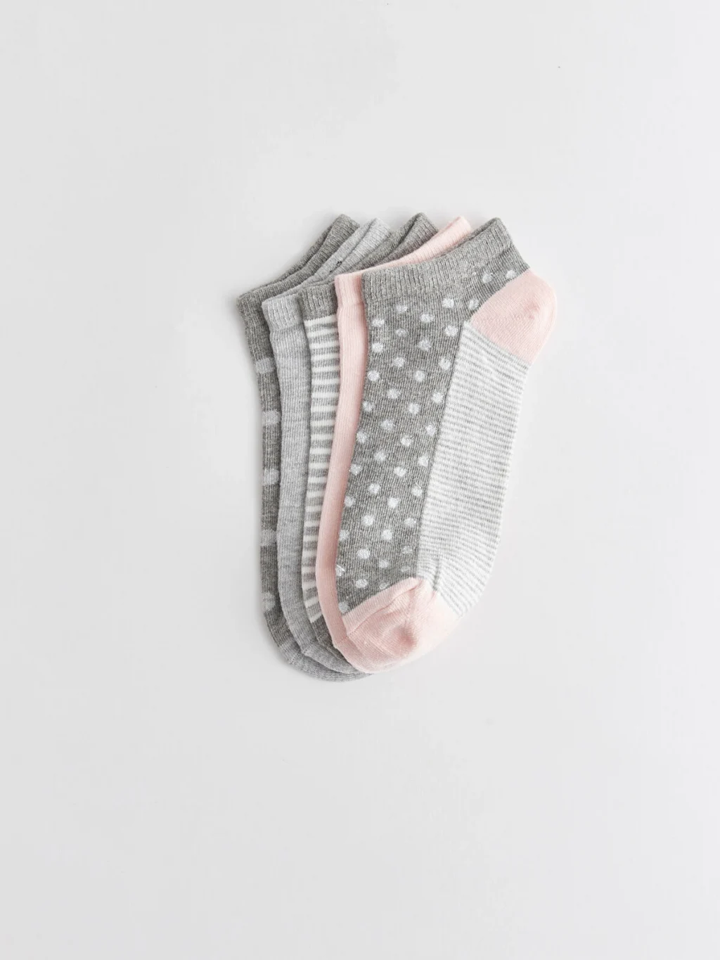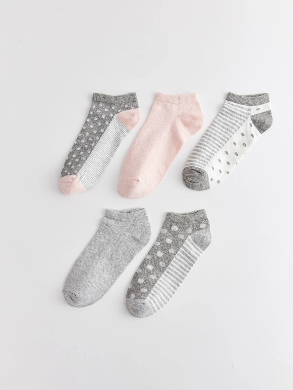 Pamuk karışımlı elyaftan üretilen patik çoraplar, yumuşak ve konforlu bir dokuya sahiptir. Desenli tasarımıyla eğlenceli bir görünüm sunar ve 5 çift patik çoraptan oluşmaktadır.