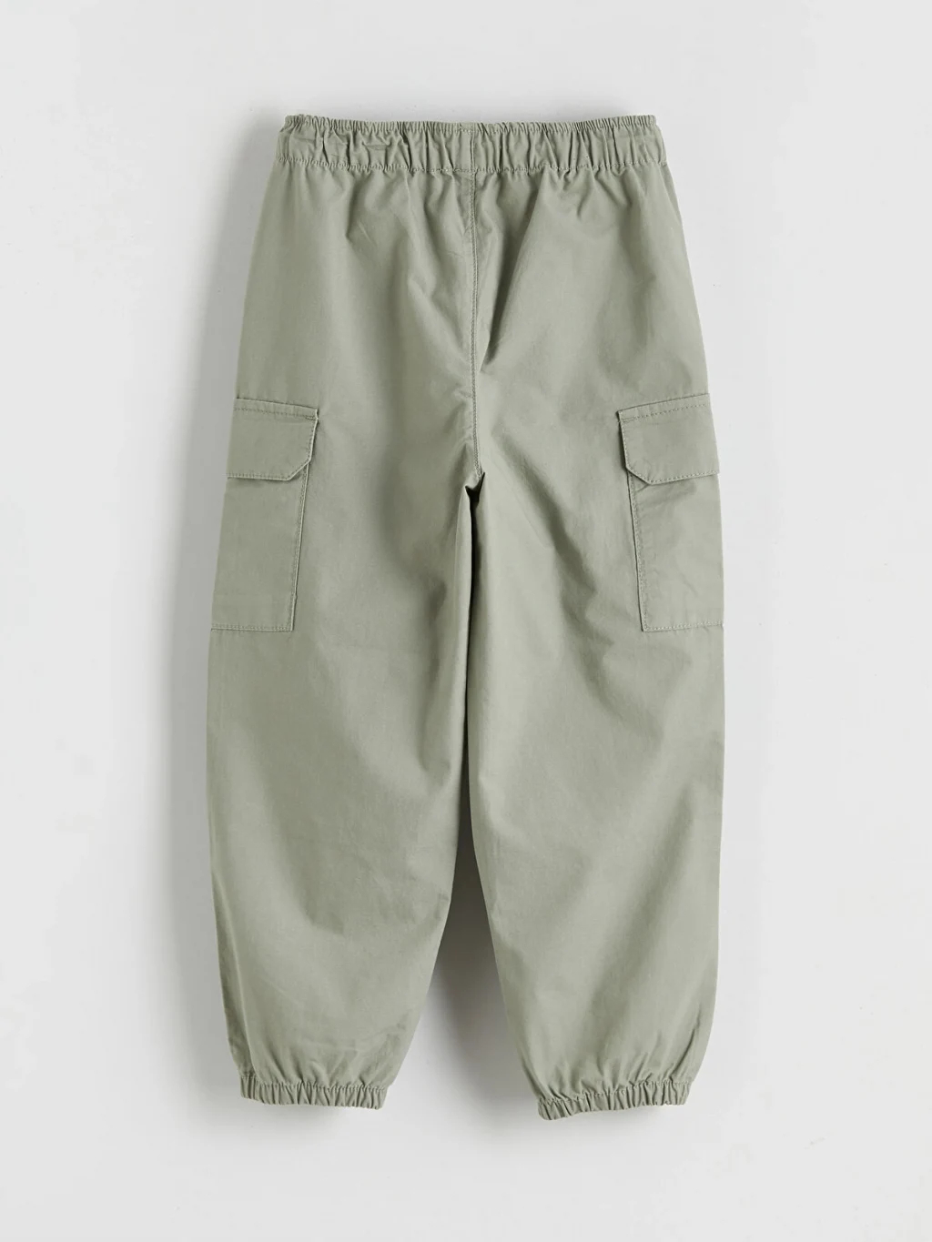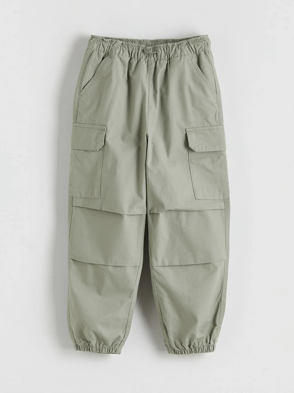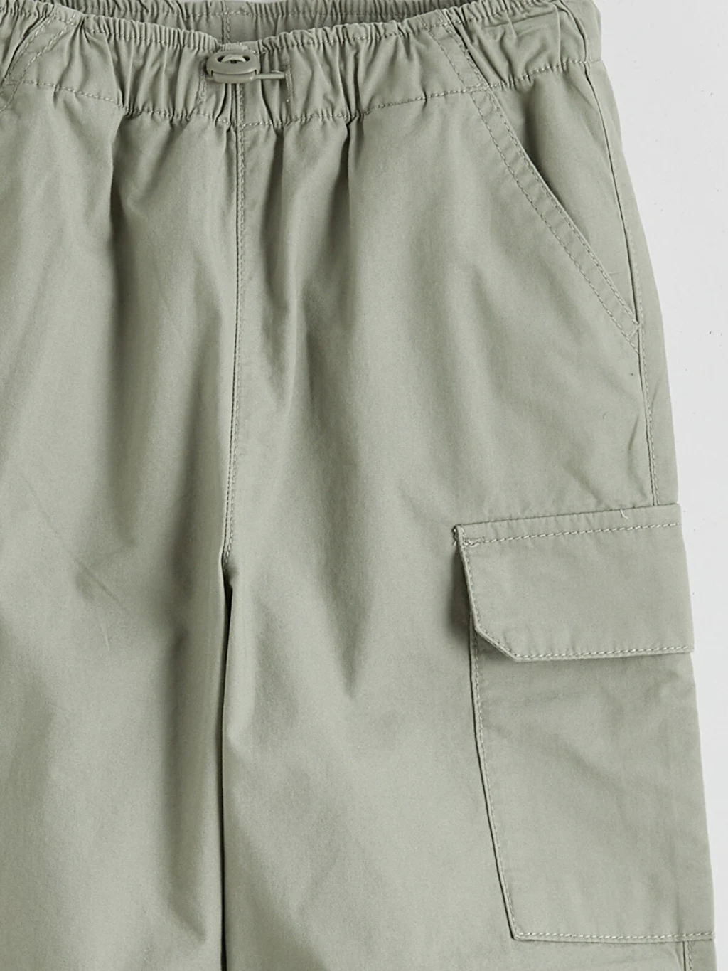 Erkek çocuk pantolon, %100 pamuk poplin kumaştan üretilmiştir. Beli lastikli ve düğme kapamalıdır. Kargo cepli tasarıma ve lastikli paçalara sahiptir.