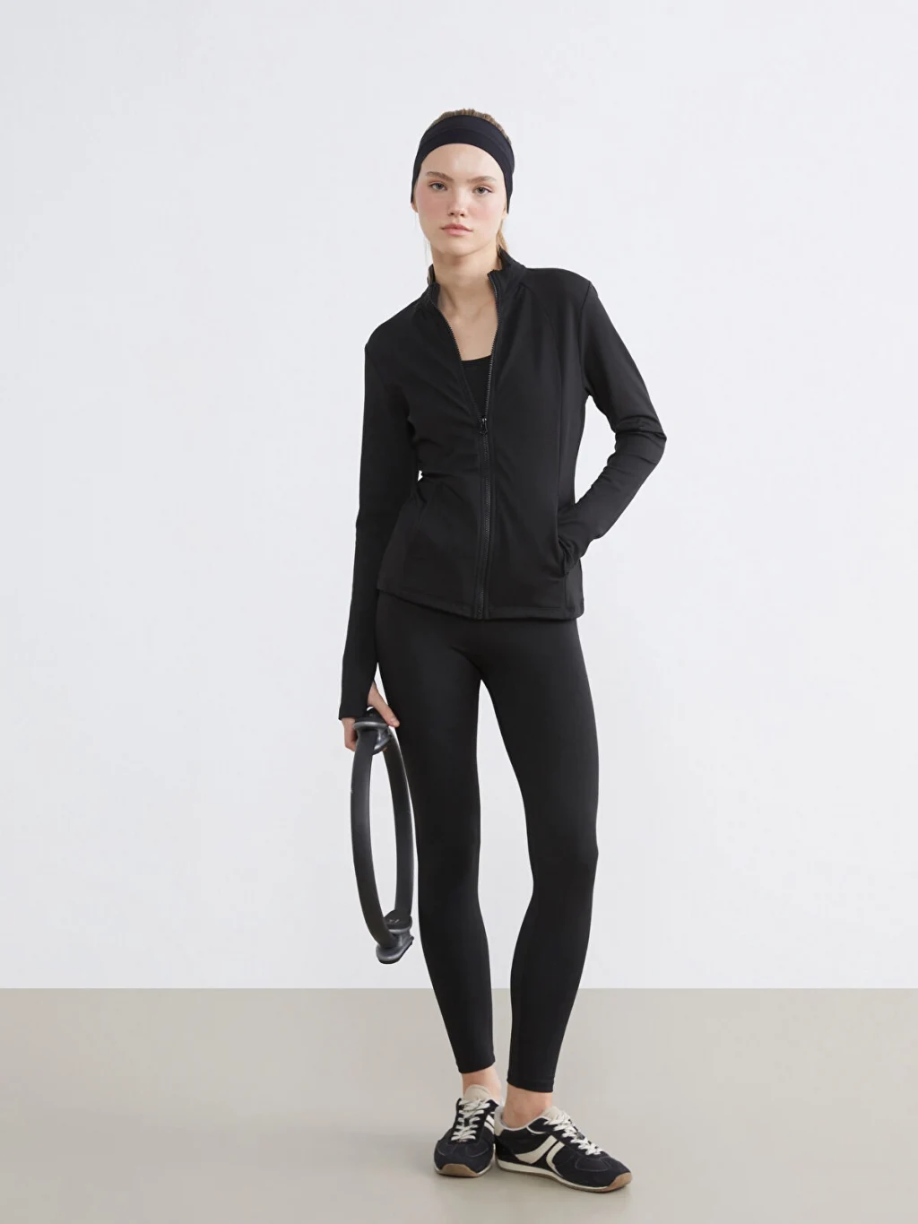 Yüksek bel, ekstra dar kalıp kadın spor tayt, esnek kumaştan üretilmiştir. Geniş ve lastikli bel bandına sahiptir.