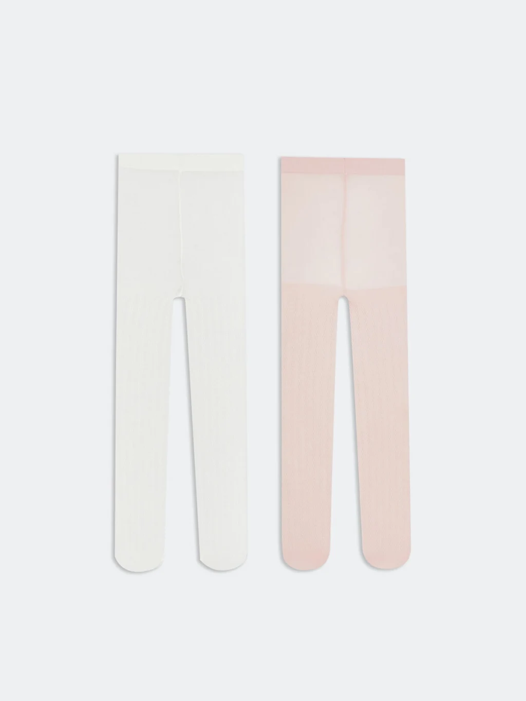 İkili paket halinde sunulan kız çocuk külotlu çorap, bir adet düz ve bir adet fitilli dokulu modelden oluşur.
