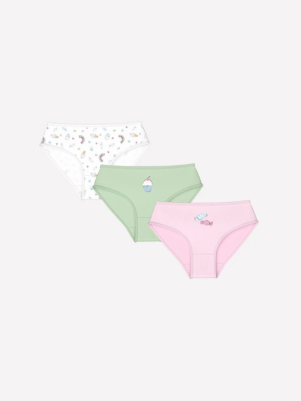 Kız çocuk 3'lü külot %100 pamuklu kumaştan üretilmiştir. Yumuşak ve nefes alan yapısıyla gün boyu rahatlık sağlar.