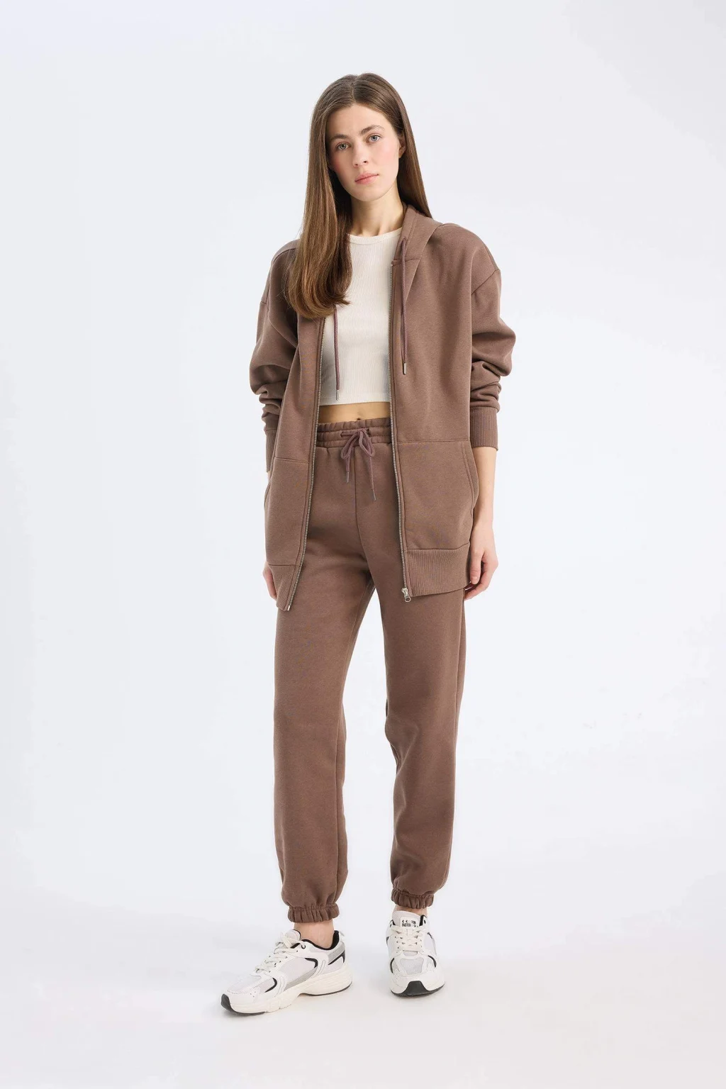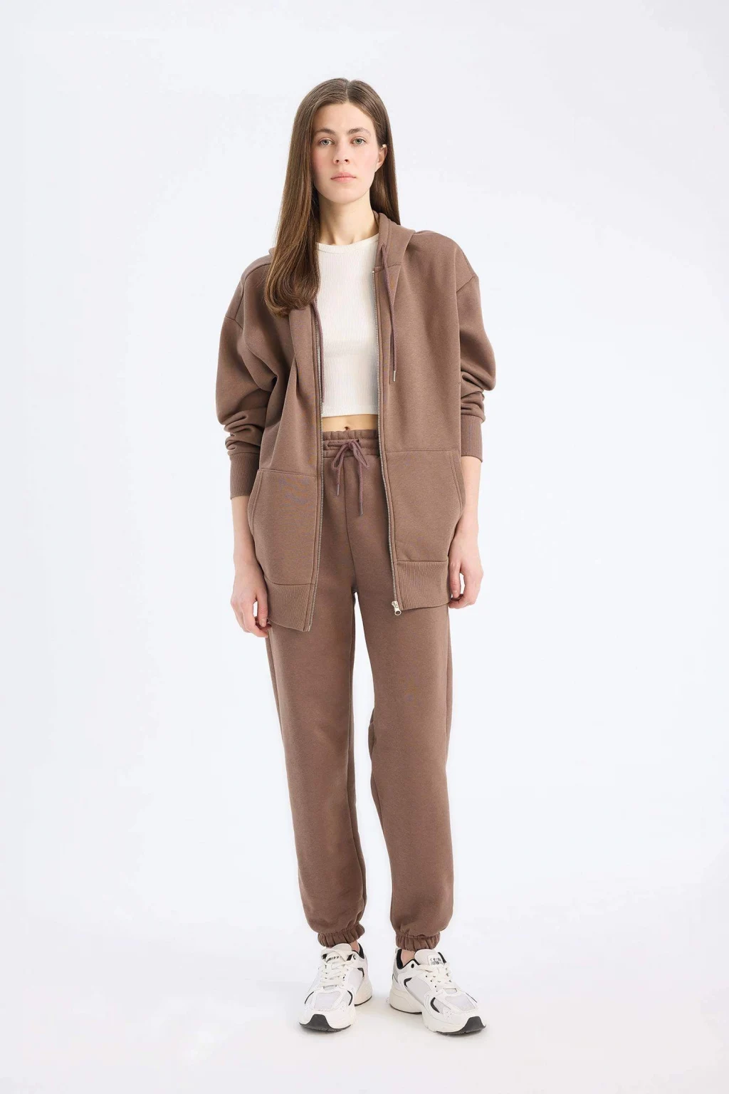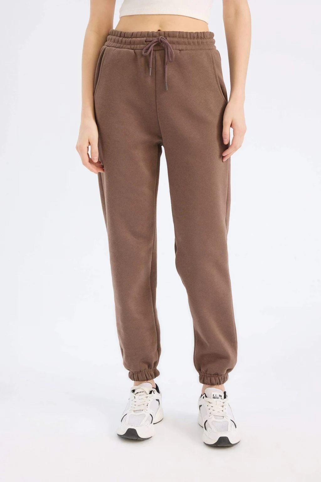 XSIDE Kahverengi Beli Lastikli Baskılı Kadın Kalın Eşofman Altı