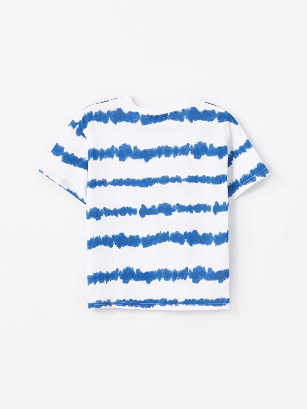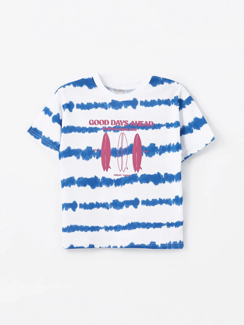 Erkek çocuk tişört, %100 pamuklu penye kumaştan üretilmiştir. Bisiklet yaka, kısa kollu ve rahat kalıplıdır. Önü baskılı ve desenlidir.