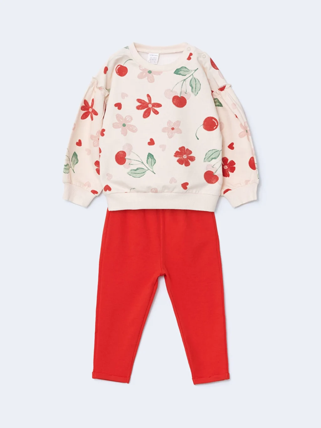 Sevimli çiçek desenleriyle dikkat çeken sweatshirt ve tayt seti, miniklere hem rahatlık hem de hareket özgürlüğü sunar. Günlük kullanım için ideal olan bu 2'li takım, şirin tasarımıyla göz doldurur.