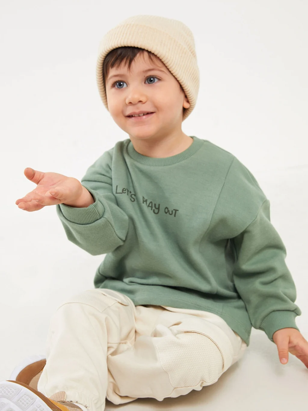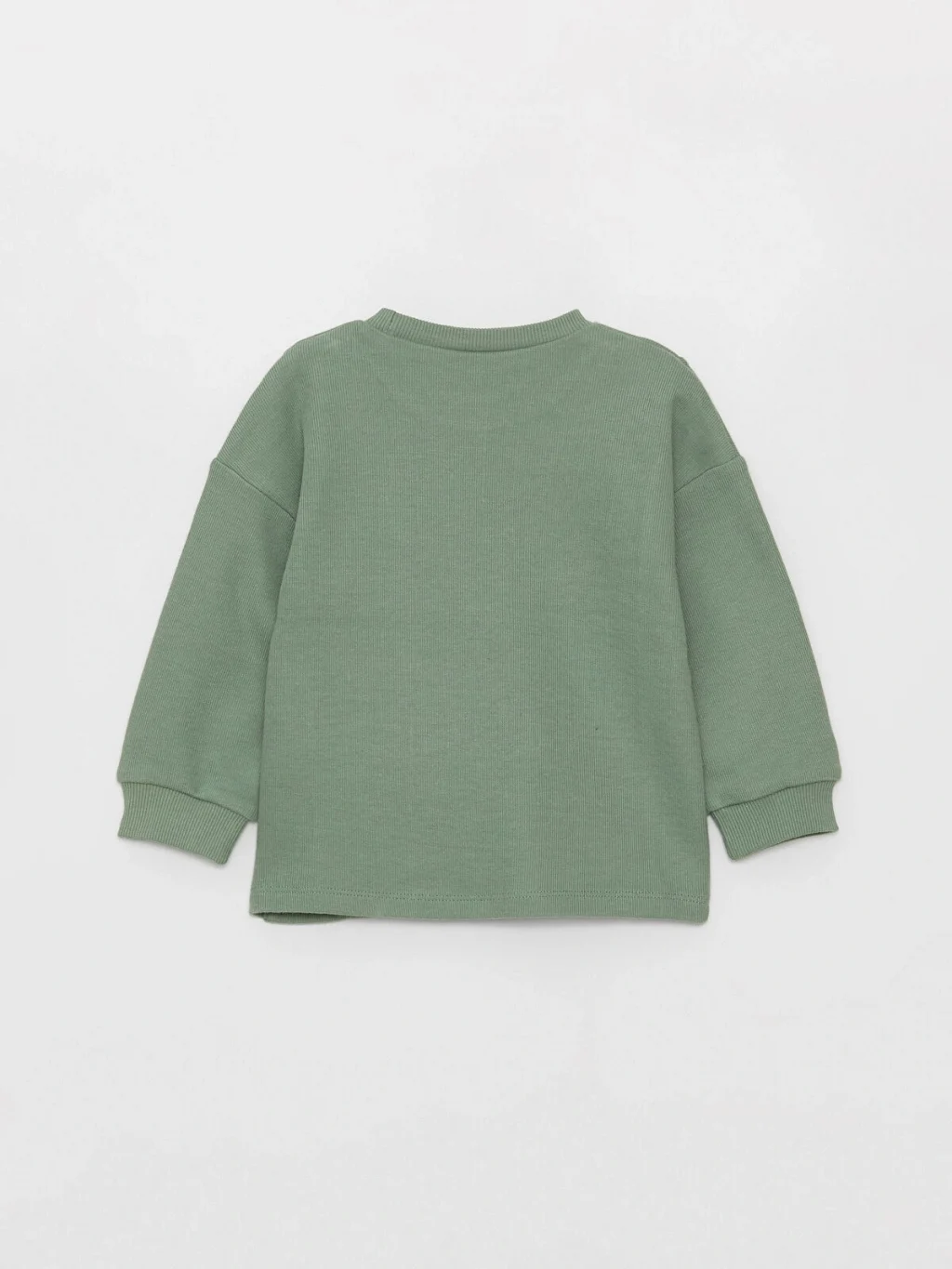 LCW baby Yeşil Bisiklet Yaka Baskılı Erkek Bebek Sweatshirt