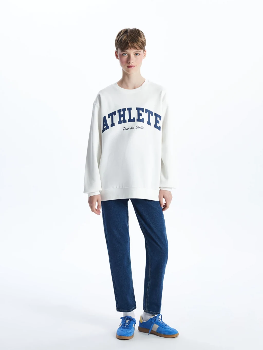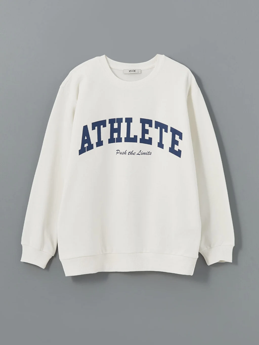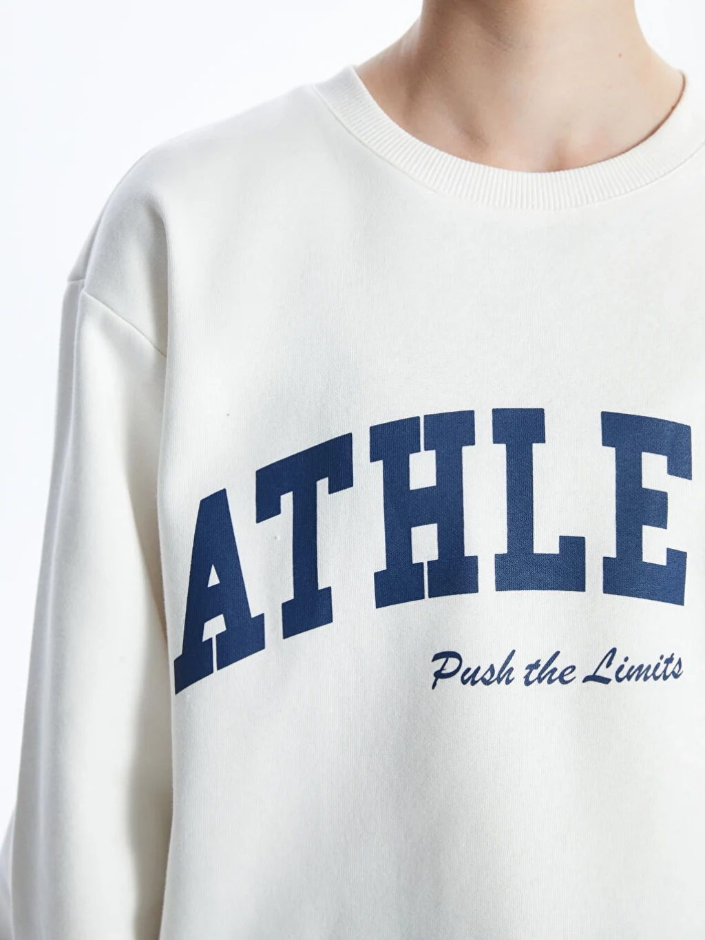 Bisiklet yaka baskılı uzun kollu kadın sweatshirt, günlük giyiminize modern bir dokunuş ekliyor. Yumuşak ve rahat kumaşı, uzun kollu tasarımı ile sizi sıcak tutarken, bisiklet yakası ve şık baskısı ile stilinizi öne çıkarıyor.