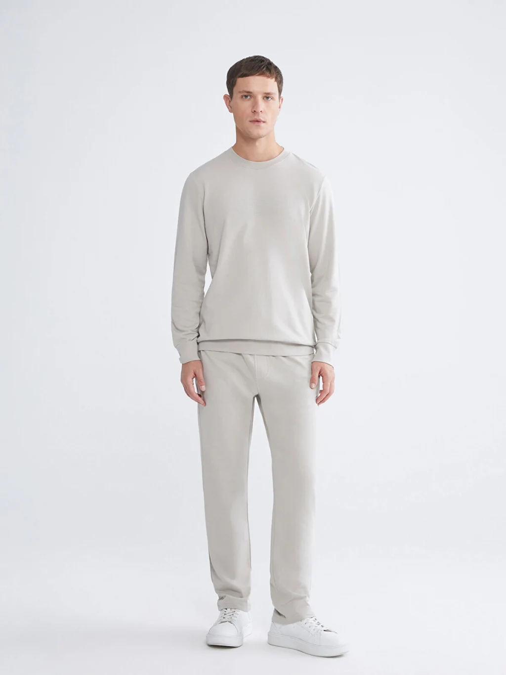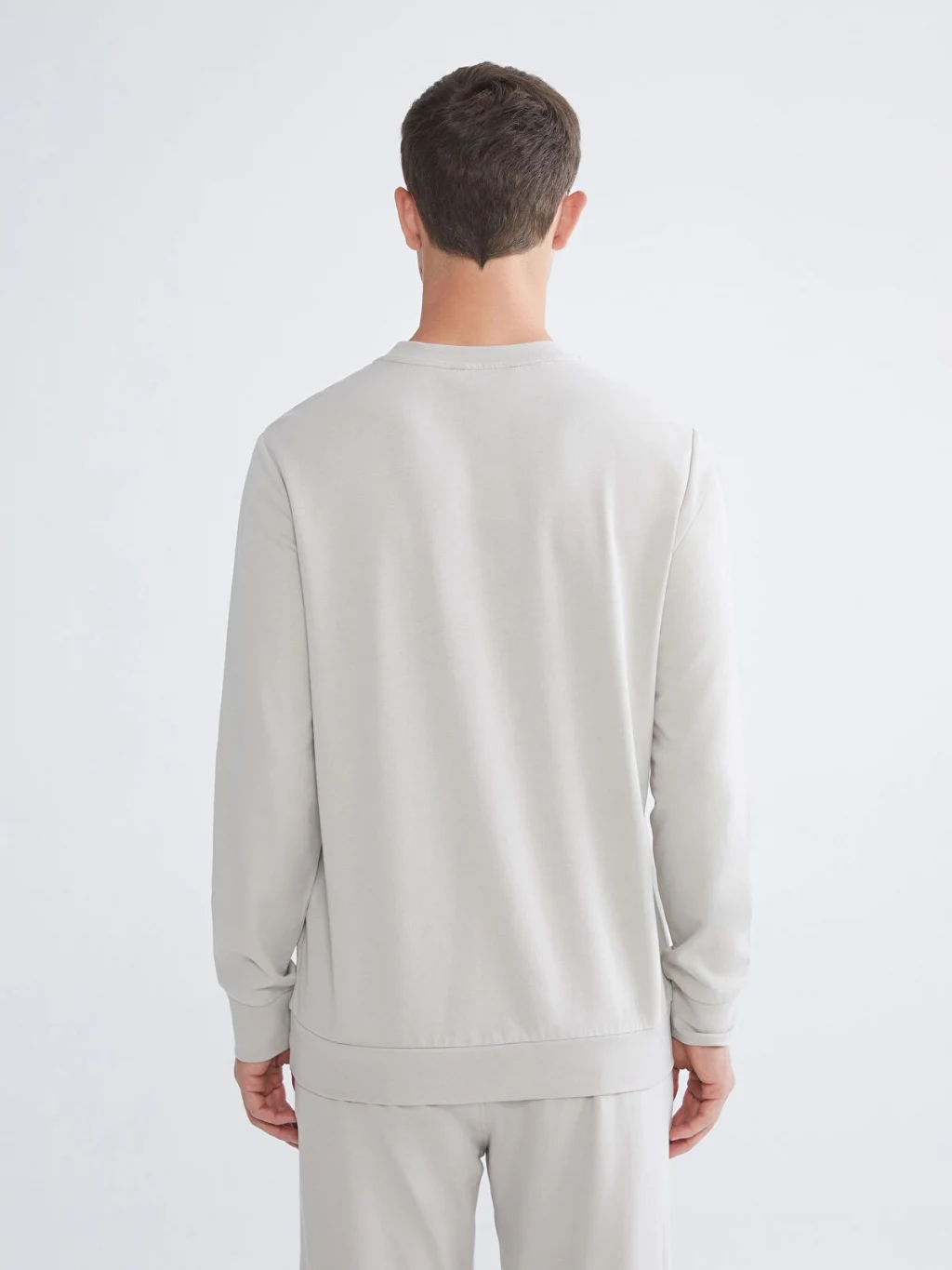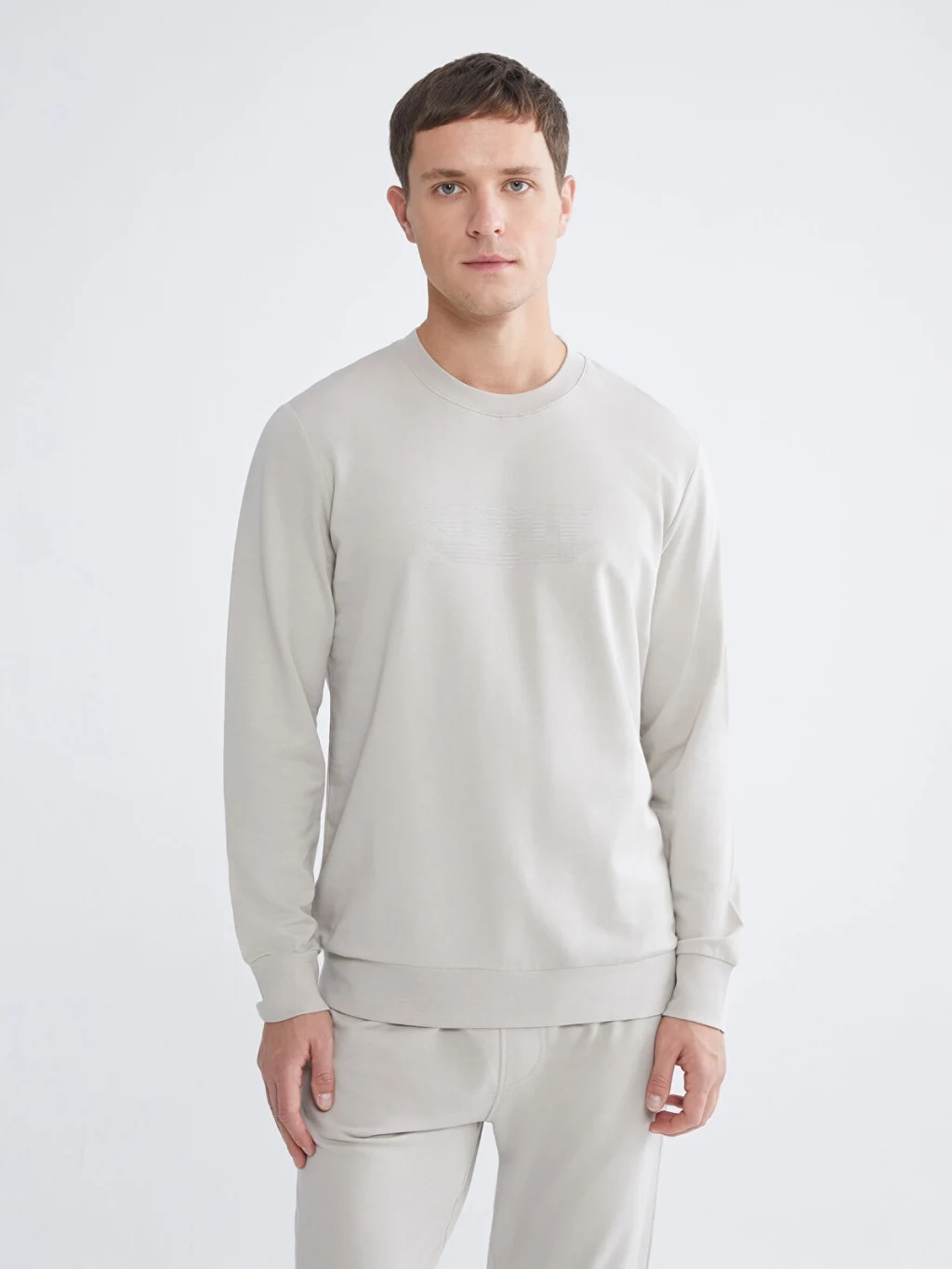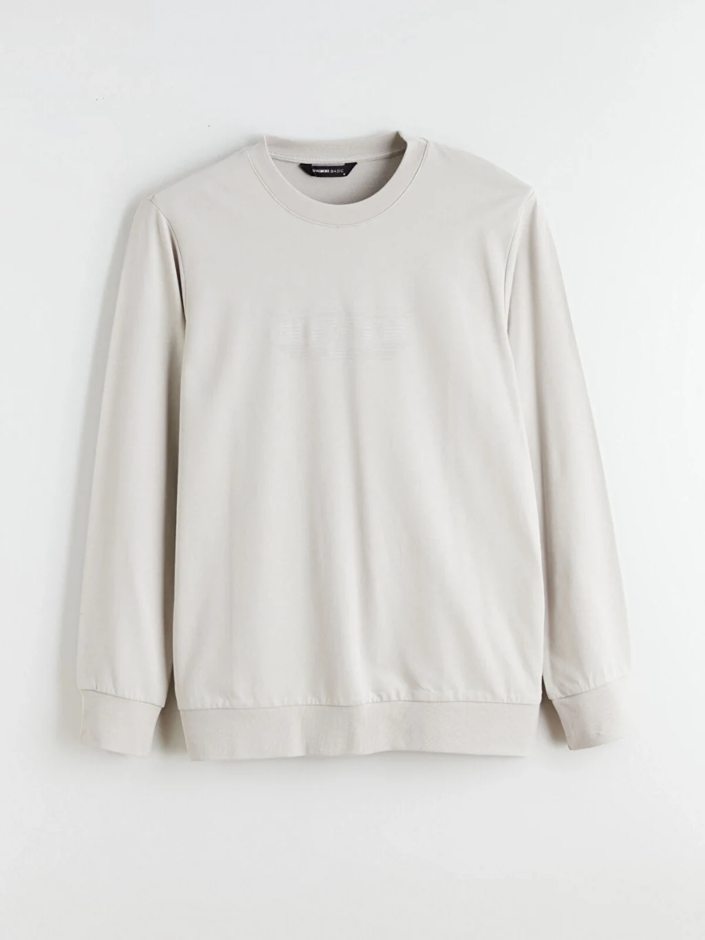 Bisiklet yaka, uzun kollu erkek sweatshirt, %100 pamuklu 2 iplik kumaştan üretilmiştir. Önü kabartma baskılıdır, kol ve etek ucu ribanalıdır.