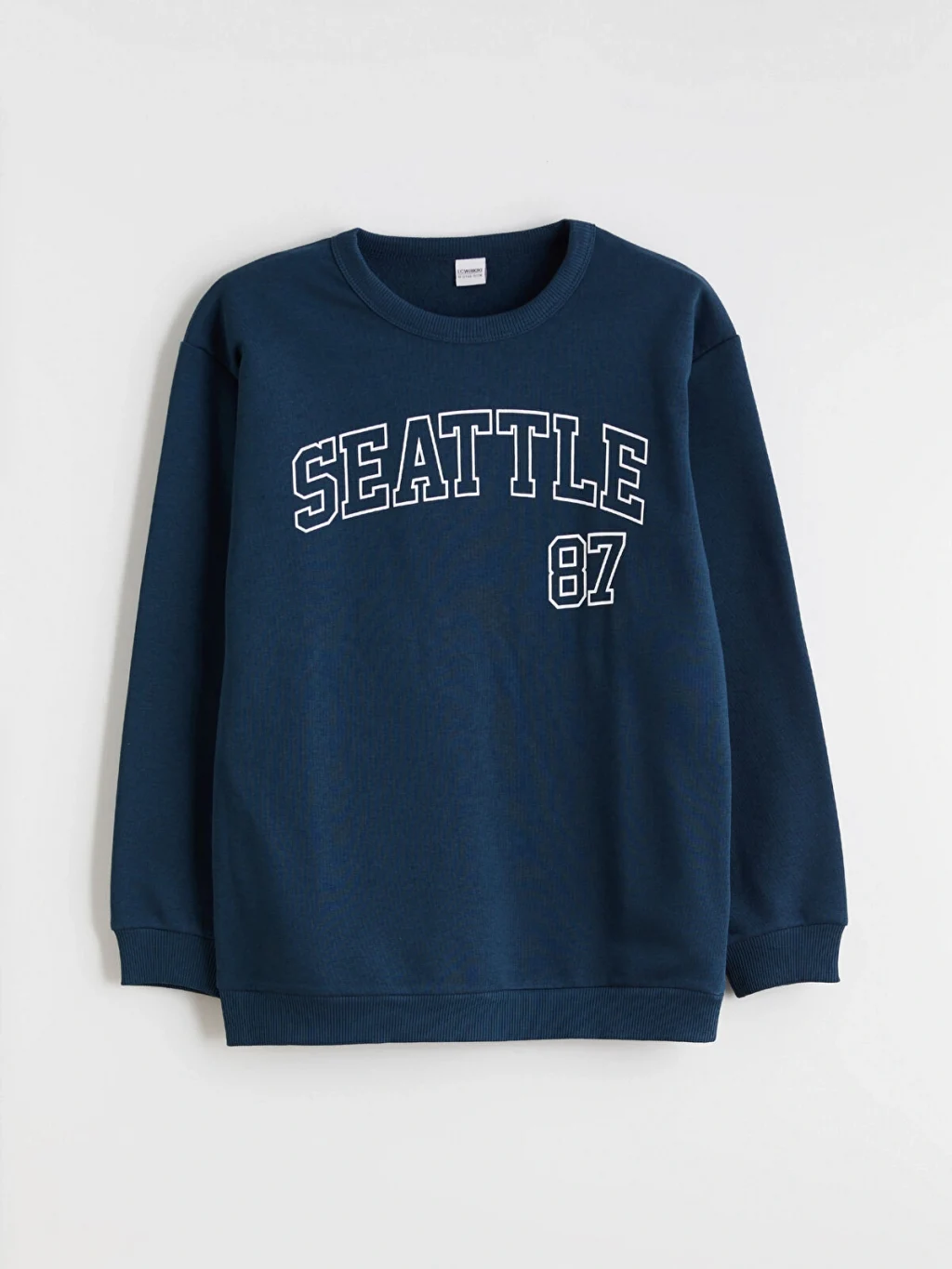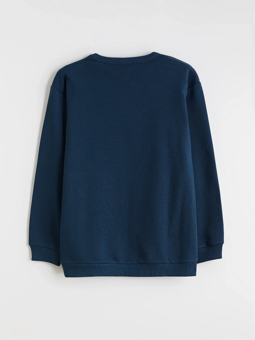 Bisiklet yaka, uzun kollu erkek çocuk sweatshirt, önü yazı baskılıdır. Kalın, 3 iplik şardonlu kumaştan üretilmiştir. Kol ve etek ucu ribanalıdır.