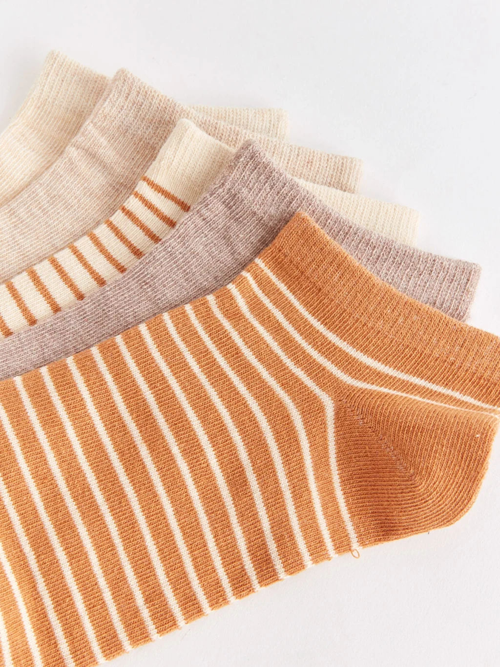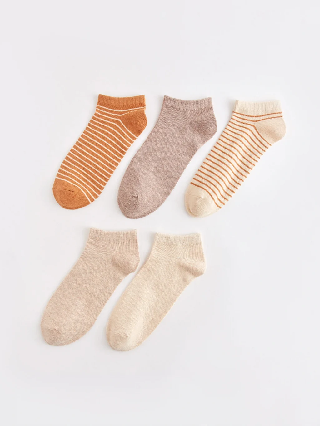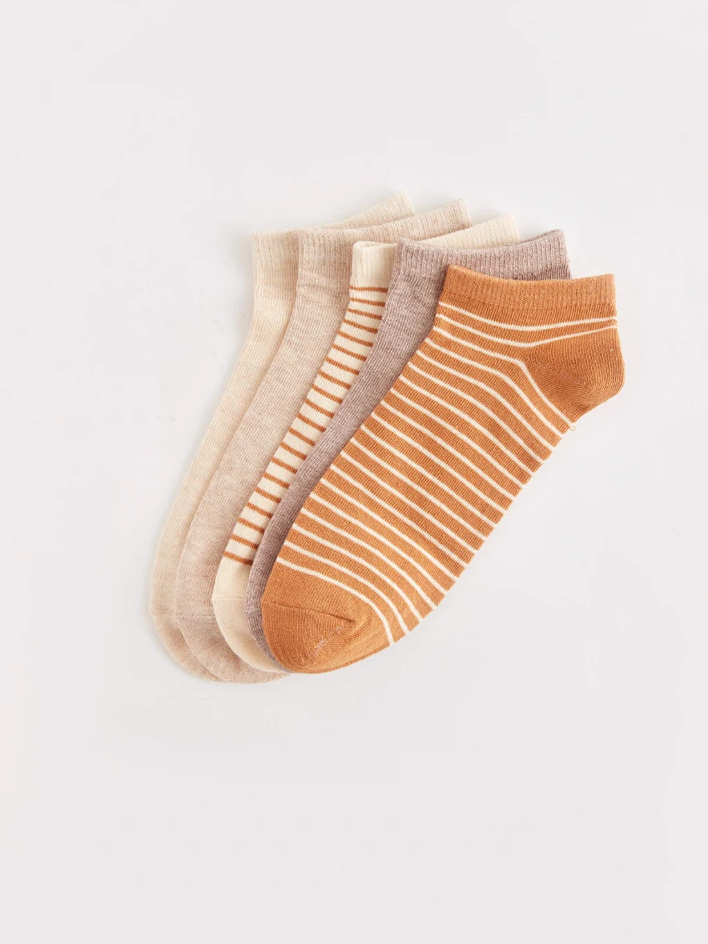 Pamuk karışımlı elyaftan üretilen patik çoraplar, yumuşak ve konforlu bir dokuya sahiptir. Çizgili tasarımıyla şık bir görünüm sunar ve 5 çift patik çoraptan oluşmaktadır.