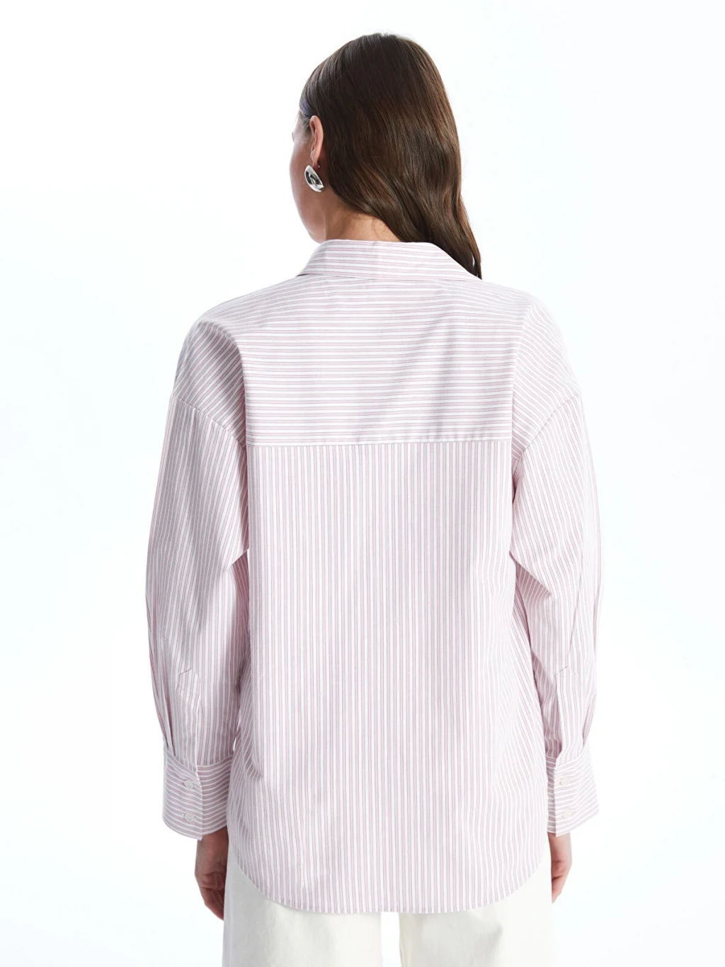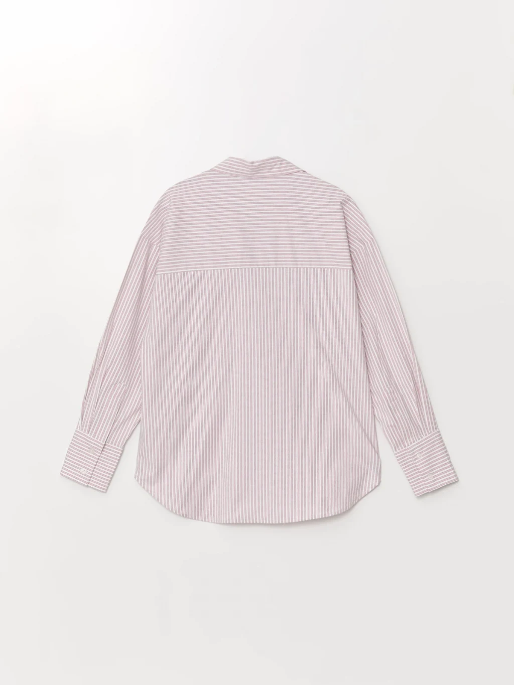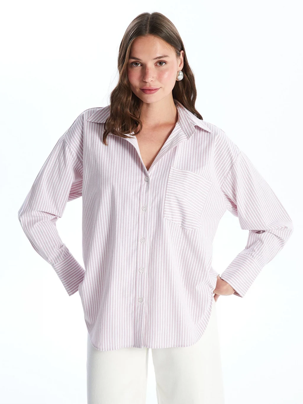 Çizgili uzun kollu kadın gömlek, oversize tasarımı ile rahatlık ve stili bir arada sunar. Zarif çizgili deseni ve geniş kesimi, her kıyafetle uyum sağlayacak şekilde tasarlanmış olup, konforlu ve stil sahibi bir görünüm yakalamanızı sağlar.