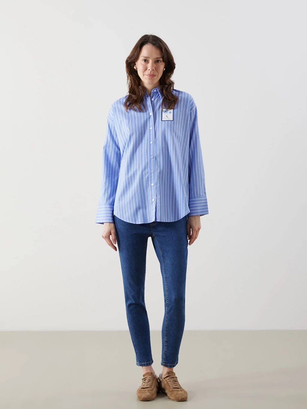 Çiçekli uzun kollu oversize poplin kadın gömlek, modern ve rahat bir stil sunar. Hafif ve nefes alabilen poplin kumaşı, rahatlık ve serinlik sağlarken, canlı çiçek desenleri her türlü ortamda dikkat çekici bir görünüm oluşturur. Hamile giyime uygundur. Hamilelikte ve sonrasında rahatça kullanabilirsiniz.