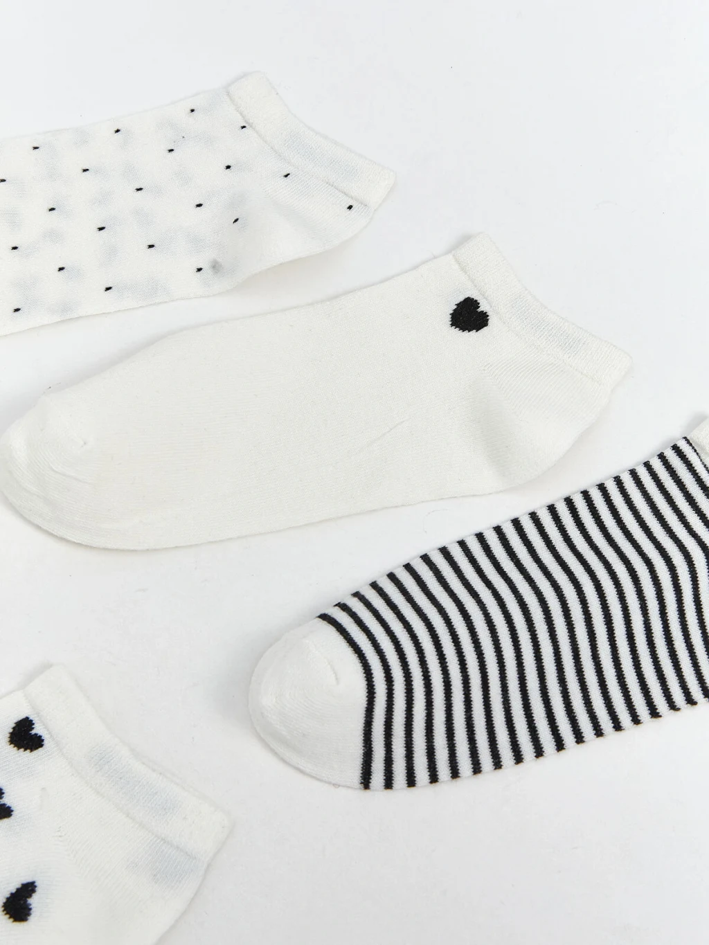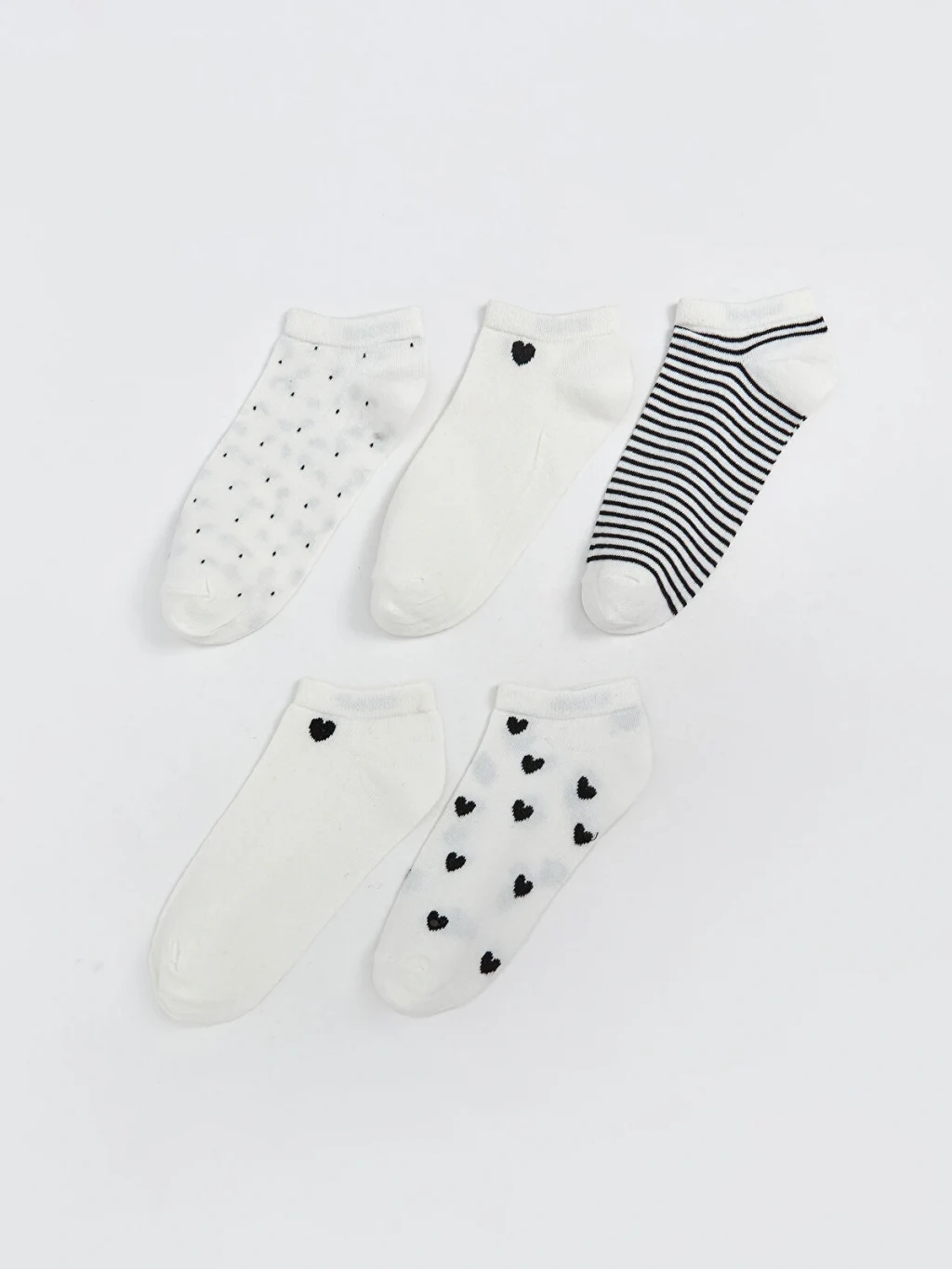 Pamuk karışımlı elyaftan üretilen patik çoraplar, yumuşak ve konforlu bir dokuya sahiptir. Desenli tasarımıyla şık bir görünüm sunar ve 5 çift patik çoraptan oluşmaktadır.