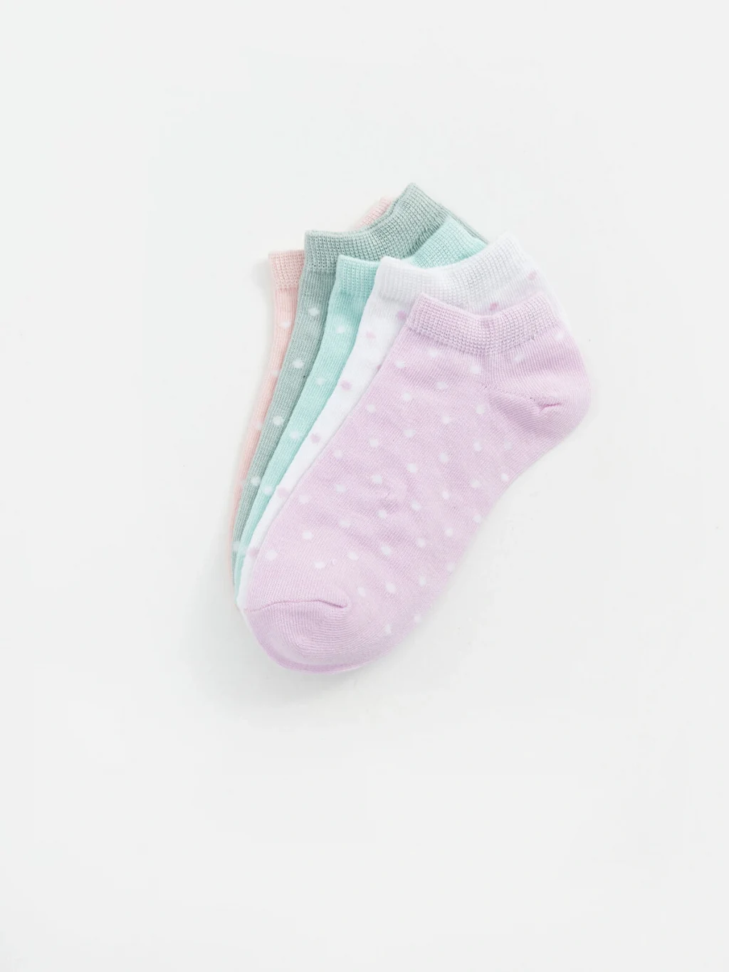 Pamuk karışımlı, esnek kumaştan 5'li kız çocuk patik çorap, şık ve rahat bir seçenek. Çocuğunuzun ayaklarını yumuşaklıkla sarar ve hareket özgürlüğü sağlar. Günlük kullanıma uygun eğlenceli bir görünüm sunar.