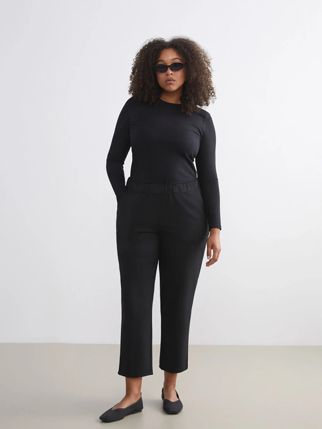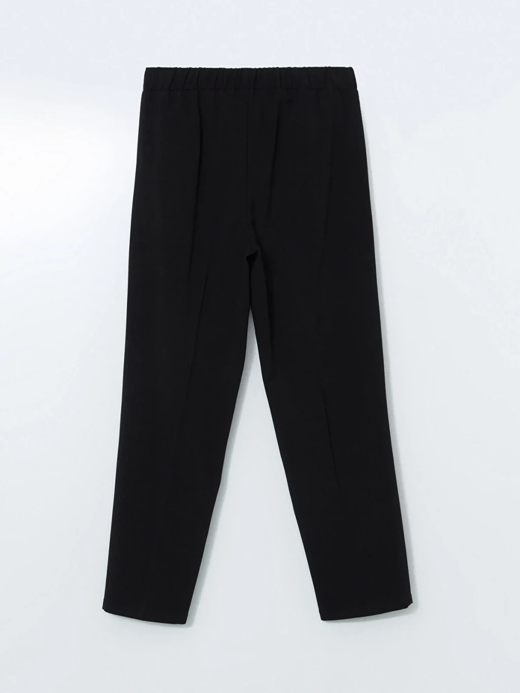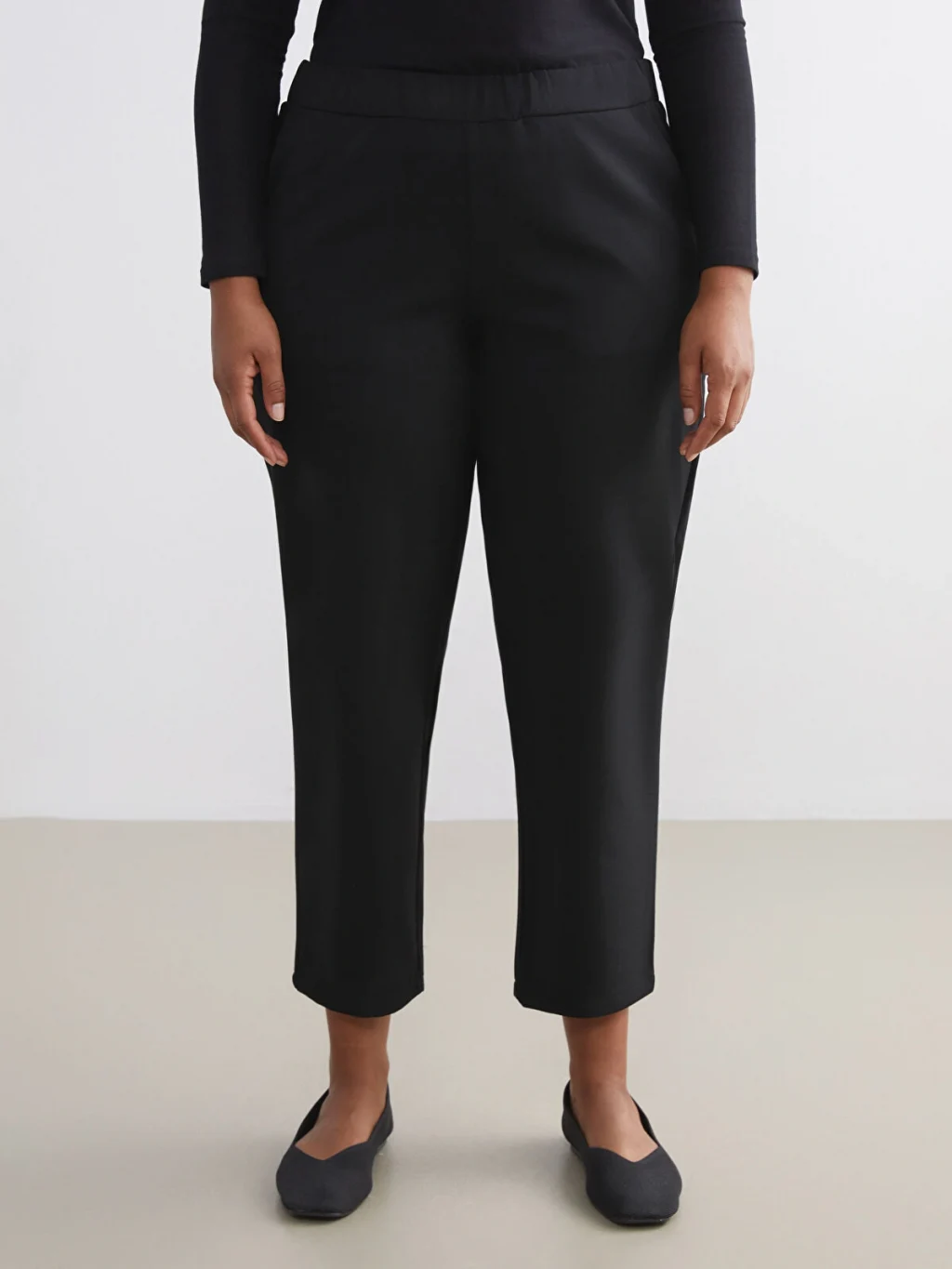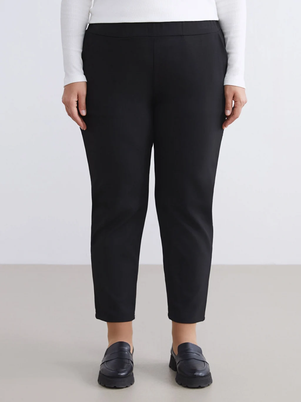 Beli lastikli kadın pantolon, viskoz karışımlı kumaştan üretilmiştir. İki yandan cepli tasarıma sahiptir.