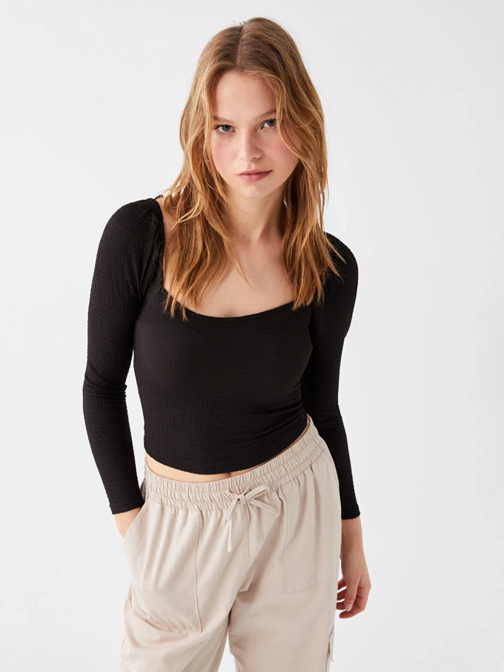 U Yaka kadın crop , dar kalıbı ve maroken kumaşıyla vücuda oturan bir tarz sunuyor. Şıklığından ödün vermeden rahatlığı yaşamak isteyenler için mükemmel bir seçenek.