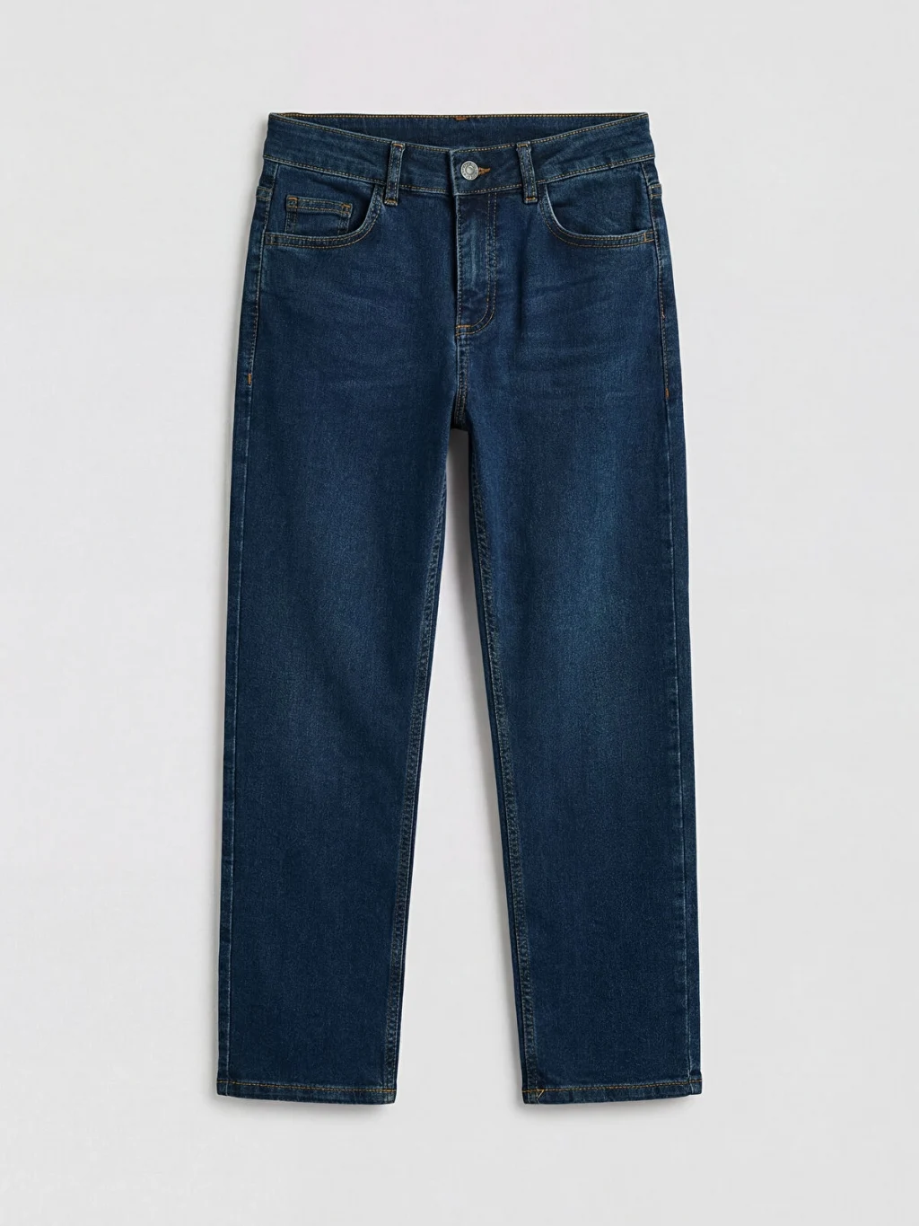 Standart kalıp erkek çocuk jean pantolon, denim kumaştan üretilmiştir. Beş cepli tasarıma sahip olup fermuar ve düğme kapamalıdır.