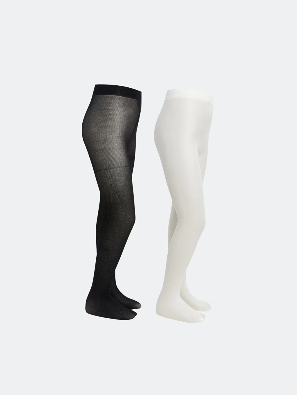 Kız çocuk 2'li külotlu çorap, düz, elastik belli ve kapalı burunludur.