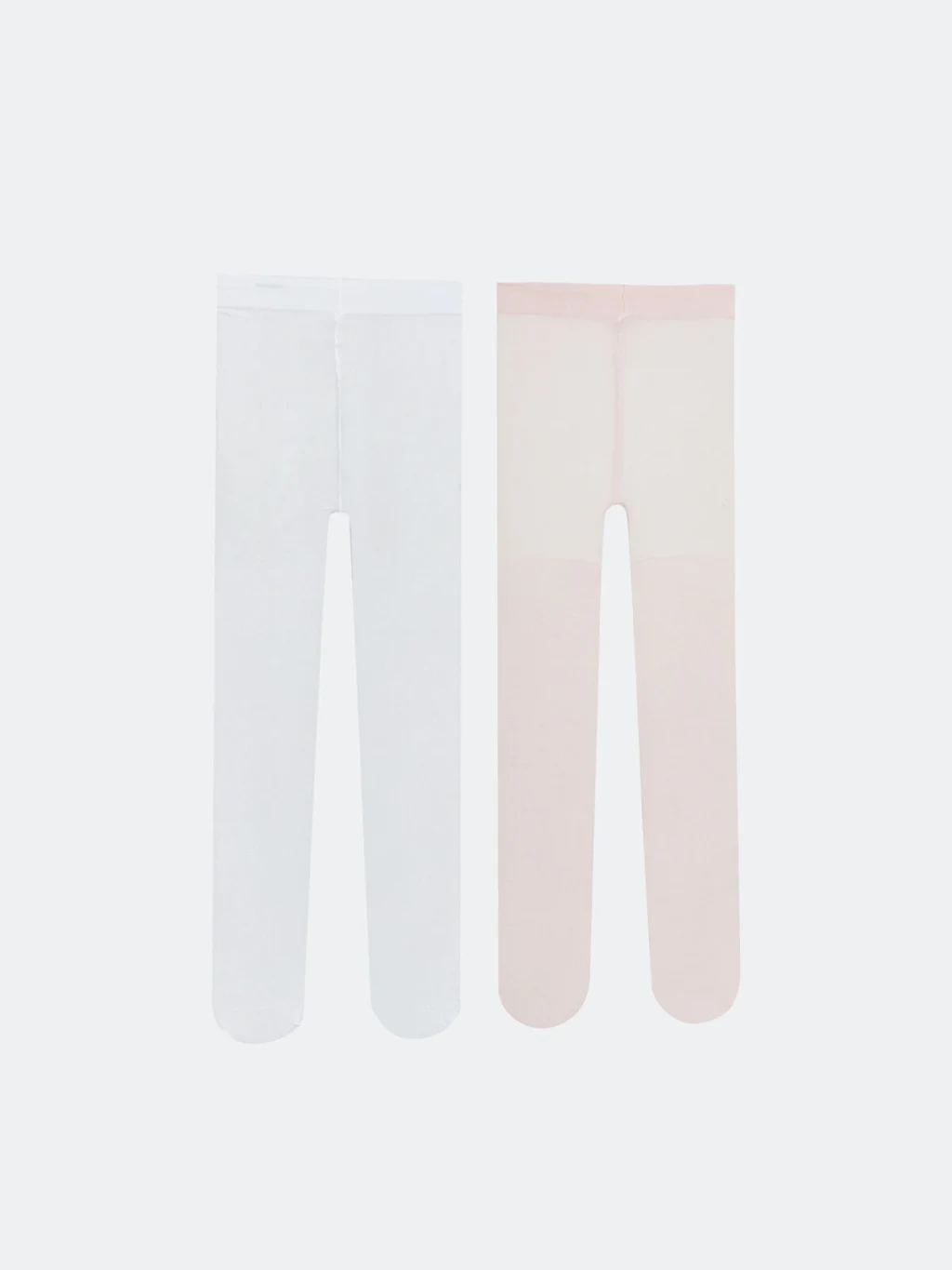 2'li paket halinde sunulan kız çocuk külotlu çorap, düz ve desensiz tasarıma sahiptir. Esnek bel bandı bulunur.